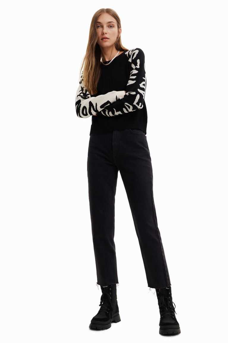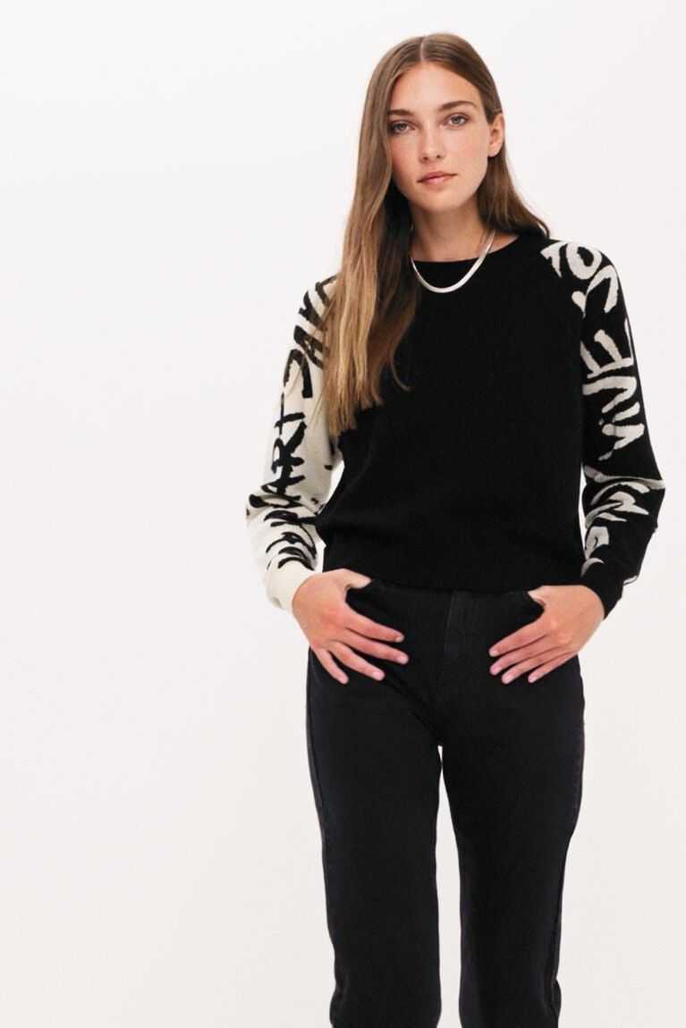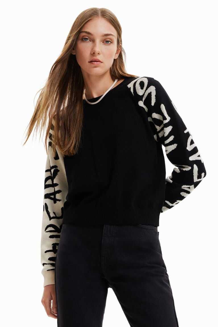 The Manifesto-print sleeves add an original touch to this knit jumper made from cotton.