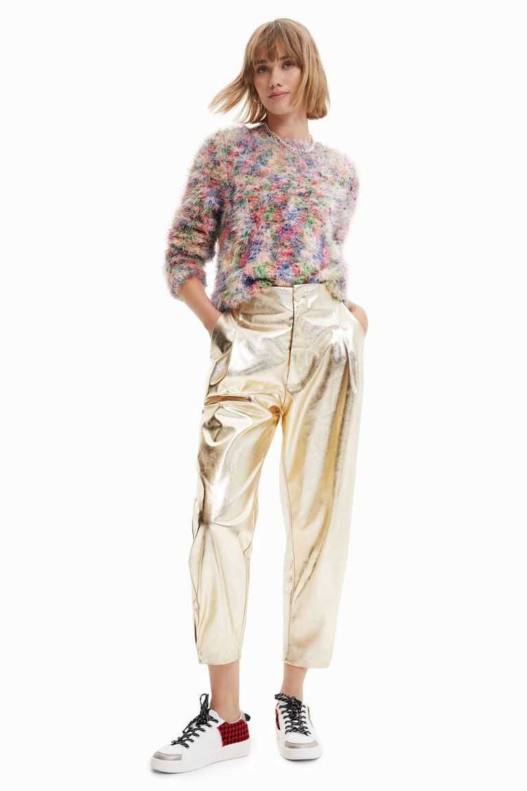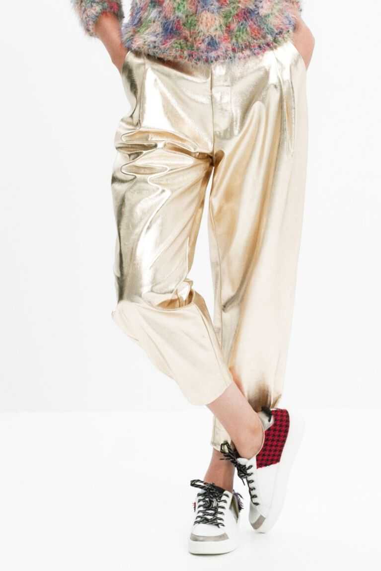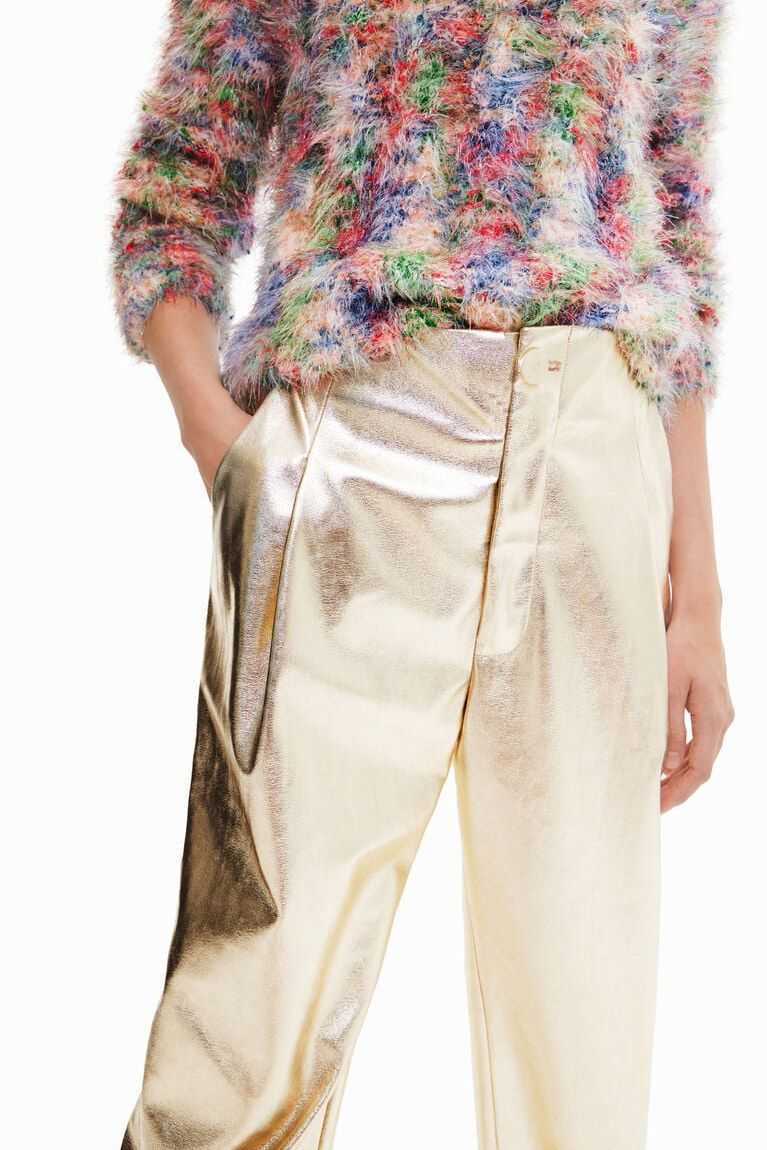 The metallic tone of these trousers can't fail to draw attention and will bring plenty of light to any of your looks. Very comfortable, thanks to their slouchy silhouette and side pockets.