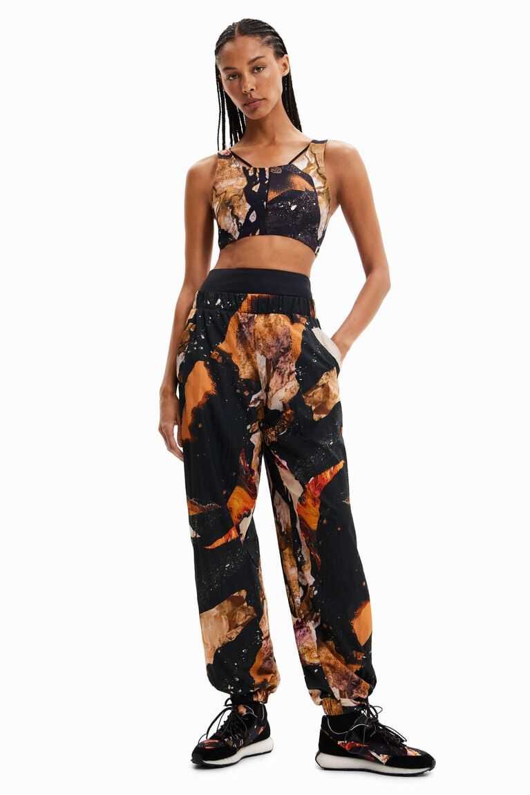 The digital mineral print on these jogger trousers will bring a twist to your sporty or casual outfits. Pair them with the matching top or jacket for a total look. Made with eco-friendly fibres.