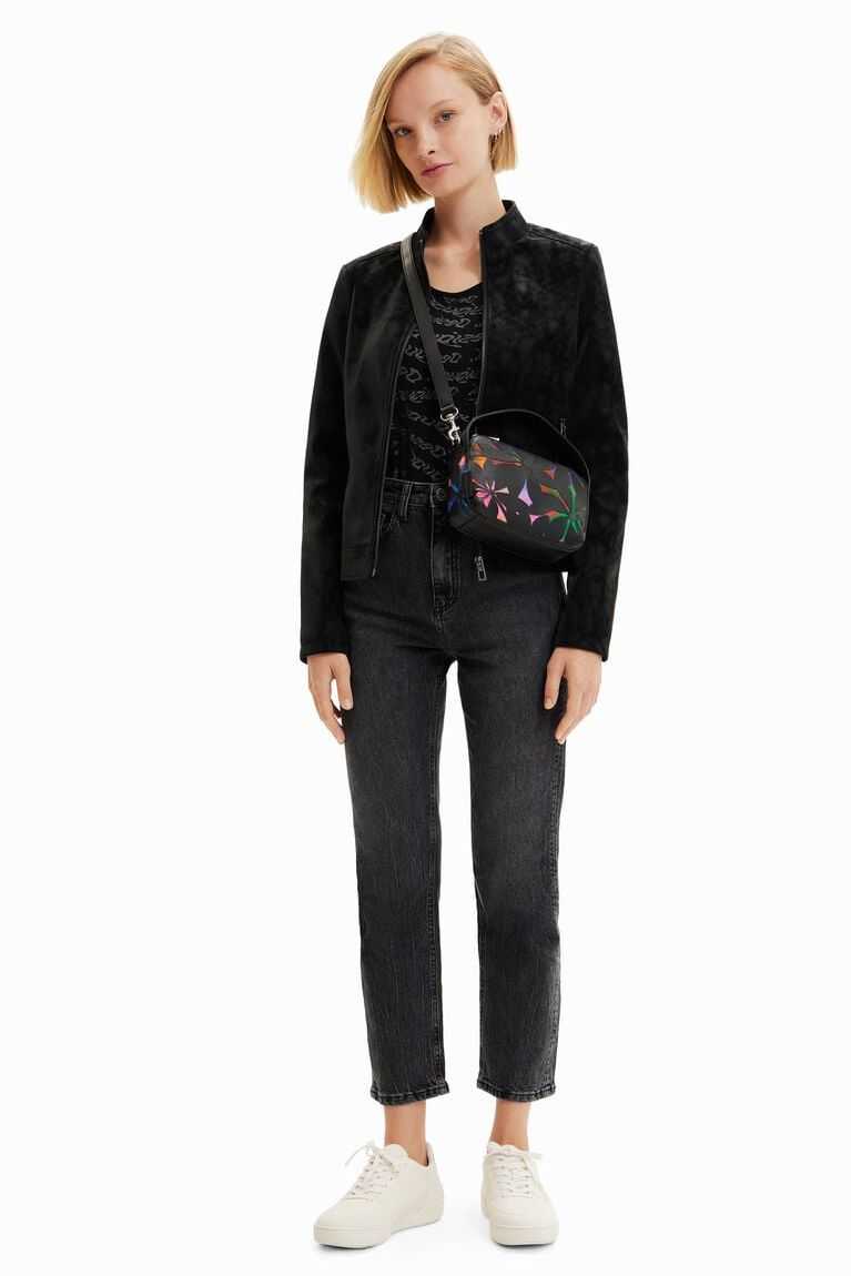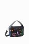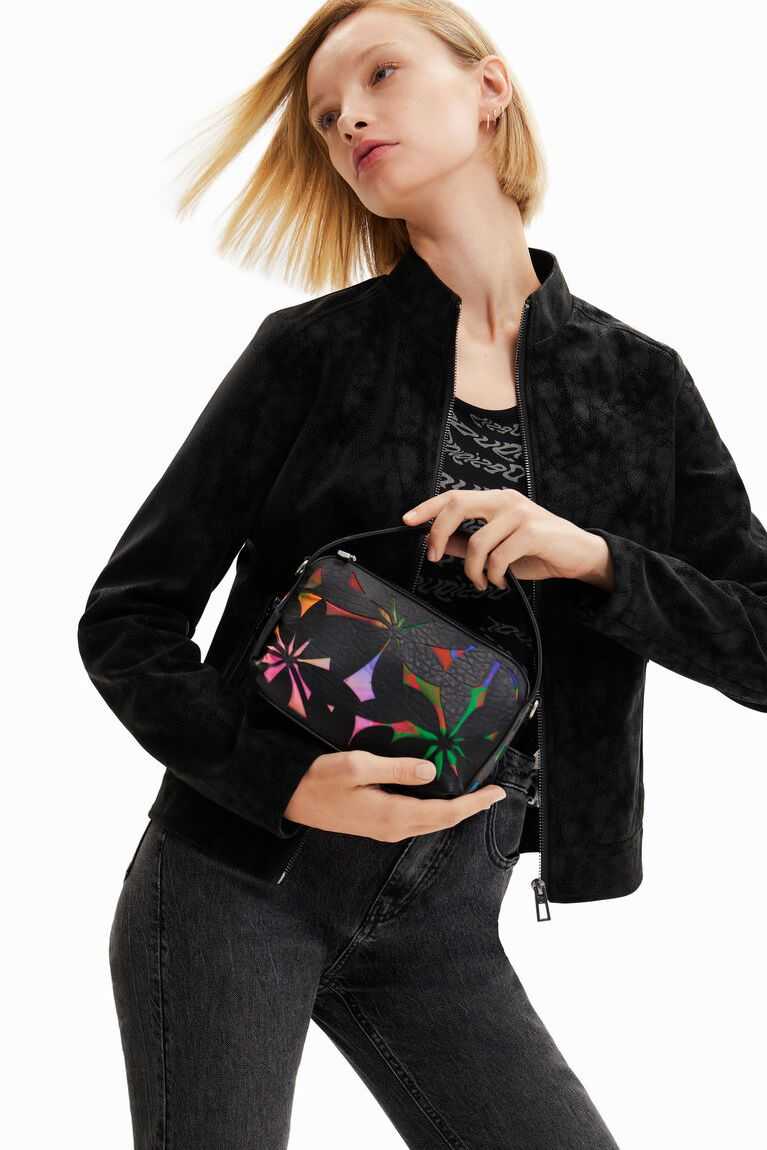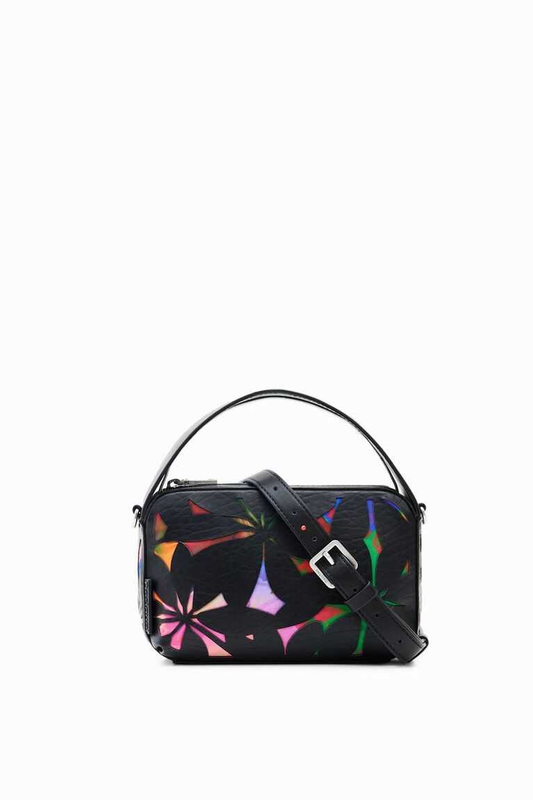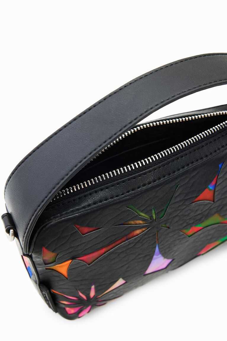 A mini bag in leather-effect fabric with a die-cut flower design, several handles and an inside pocket.