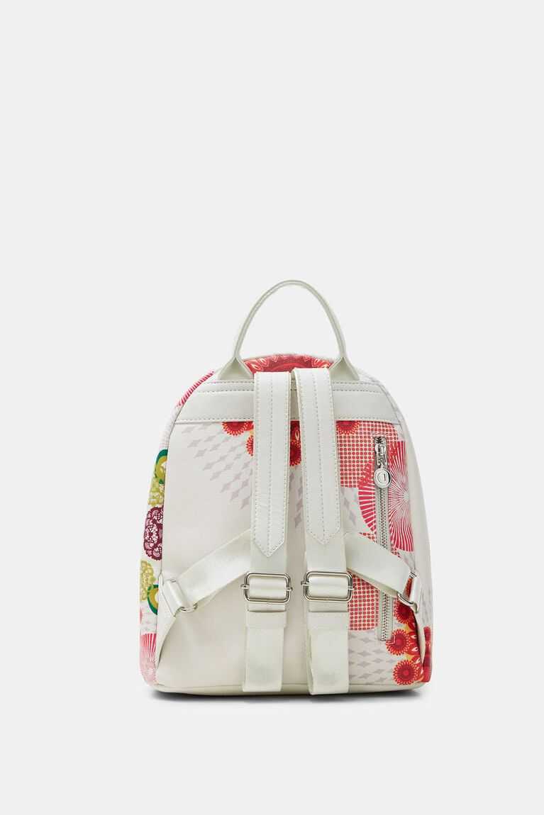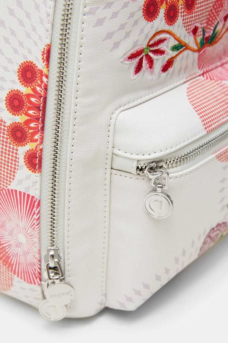 Enjoy flowers all year round, thanks to this coquettish mini-sized backpack with pretty floral print on a background of synthetic leather. With outer and inner compartment that make it practical and functional, it's perfect for complementing your casual looks.