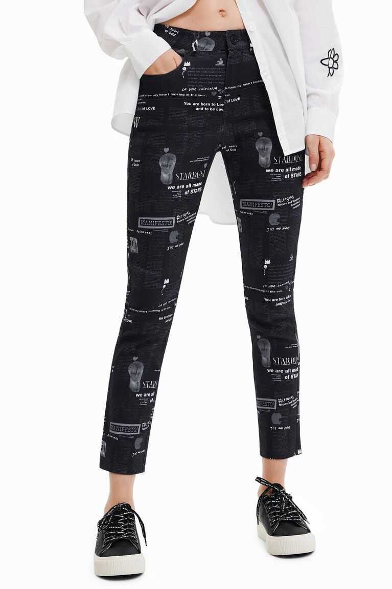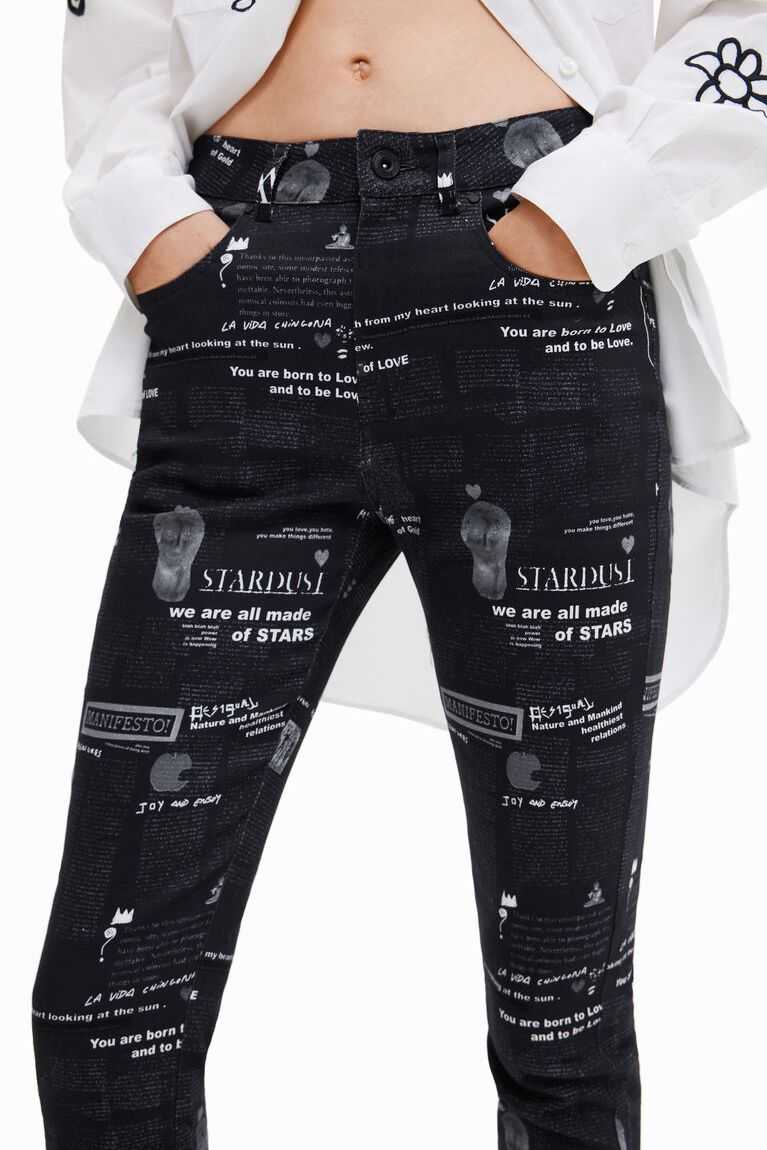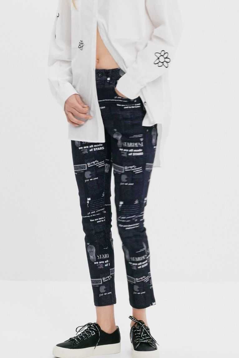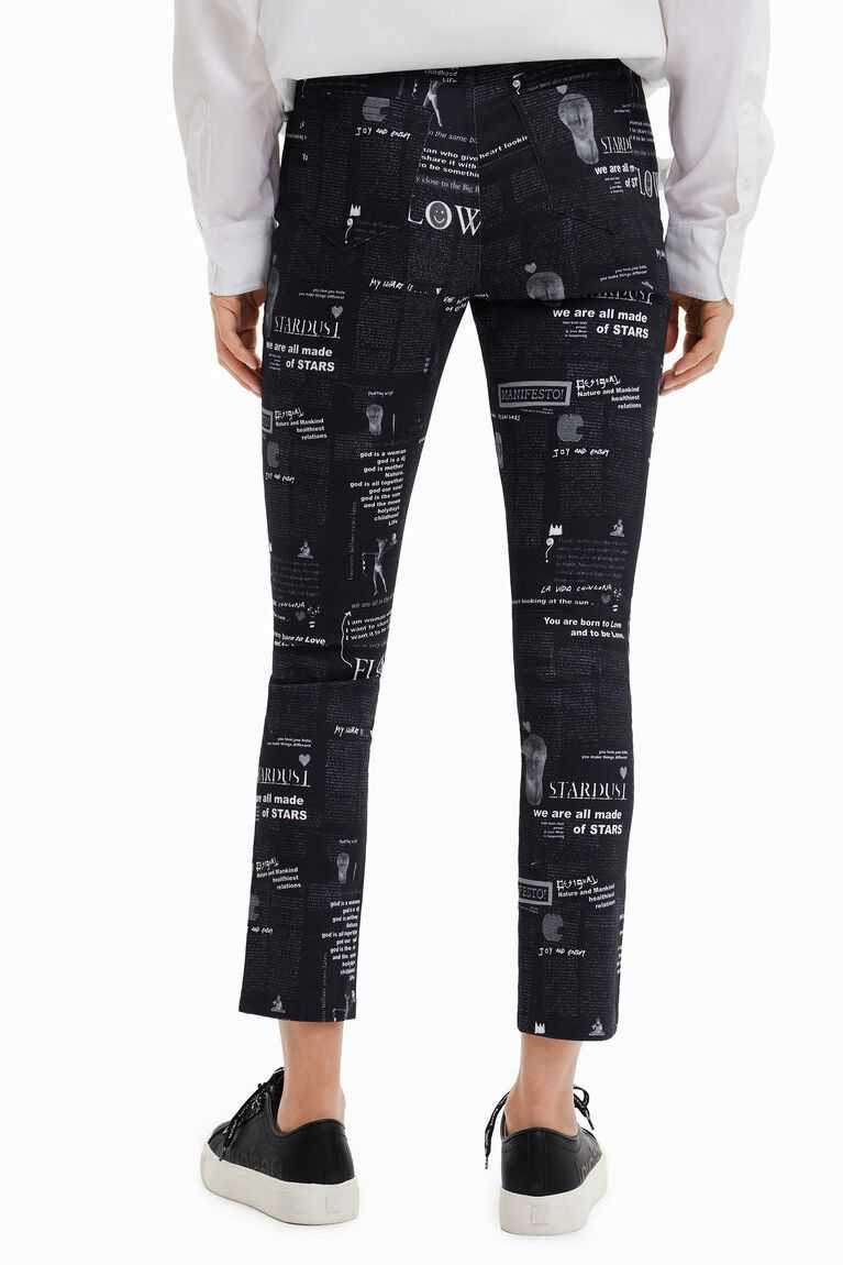 These fitted trousers bring good news thanks to their fun newspaper print. They are made from cotton with a hint of stretch for improved comfort.