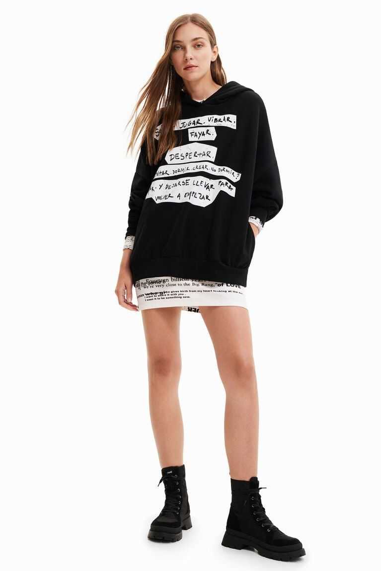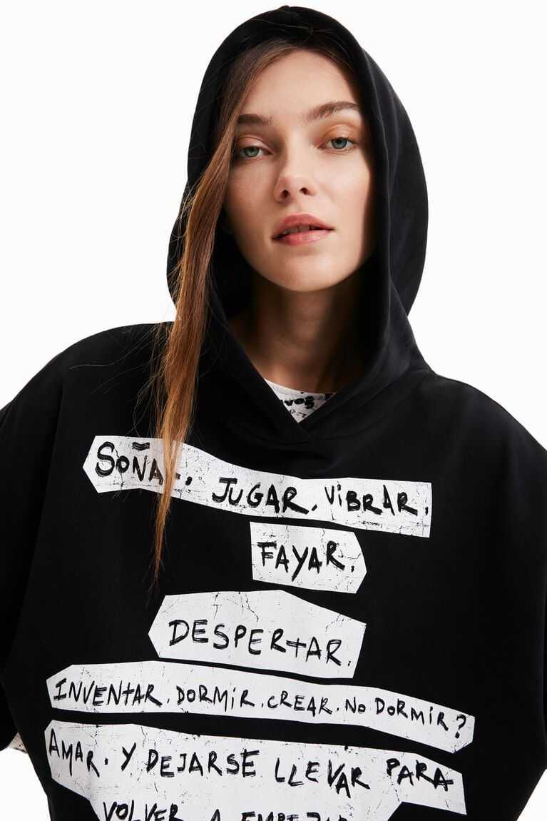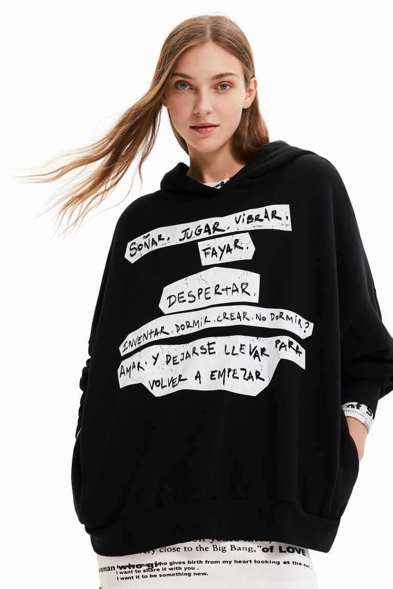 The text from the Manifesto with positive messages on the front and back brings a unique twist to this oversize hooded sweatshirt. Comfortable and soft thanks to its cotton fabric.
