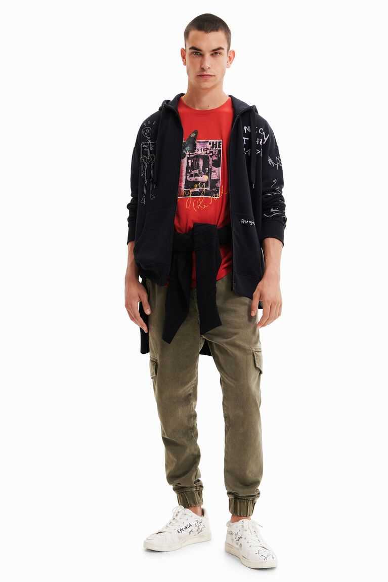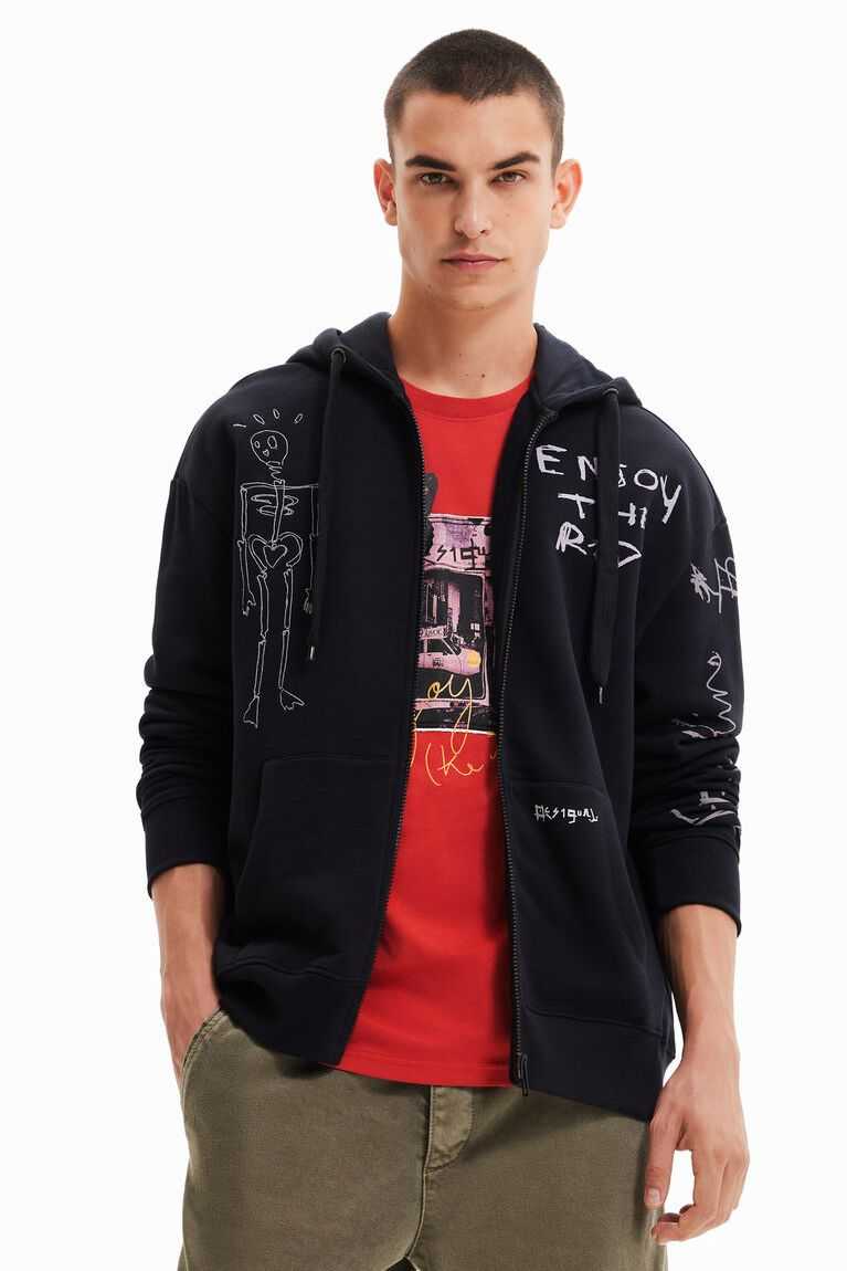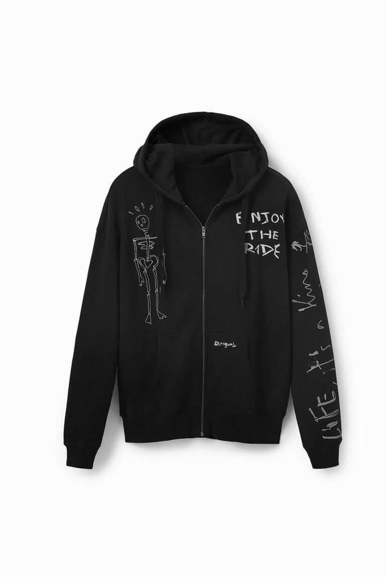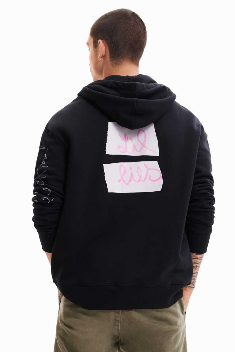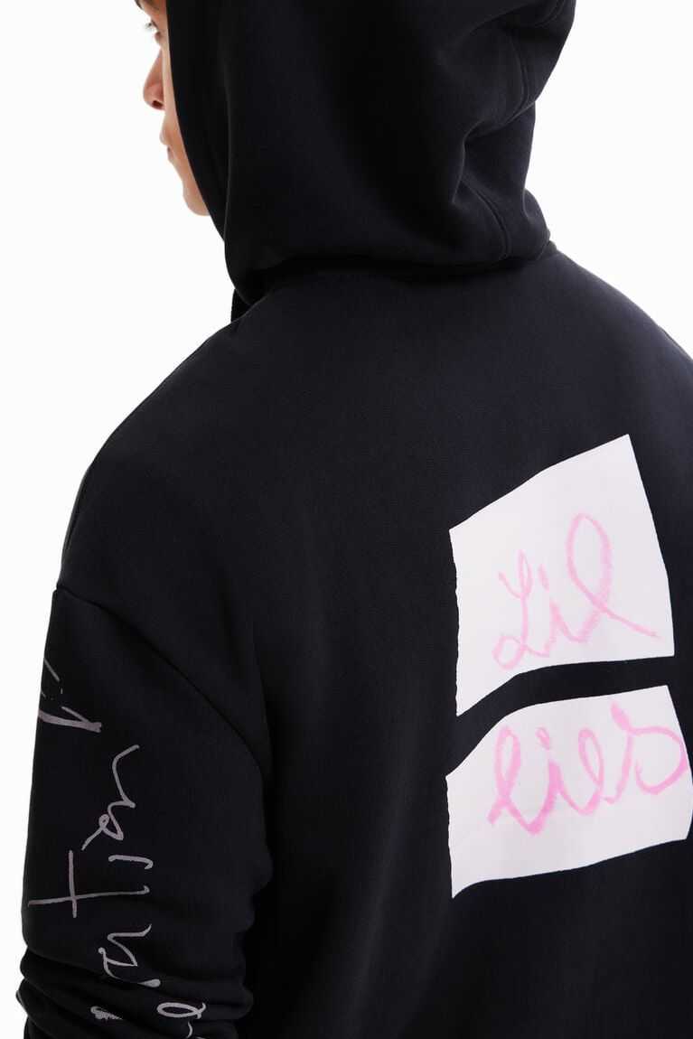 A loose-fit hoodie featuring a front zip, distressed-effect fabric, embroidered motifs and a patch with a "Lil lies" message on the back.
