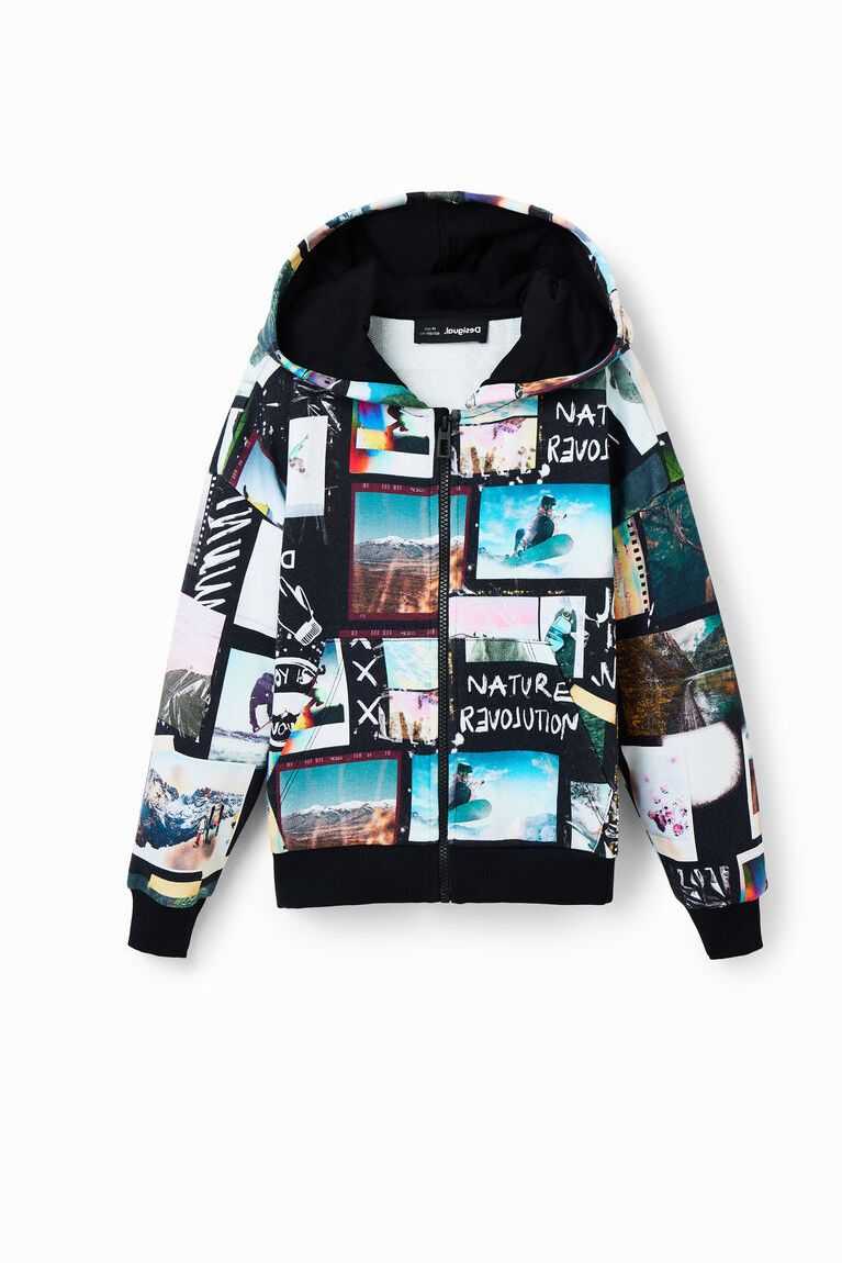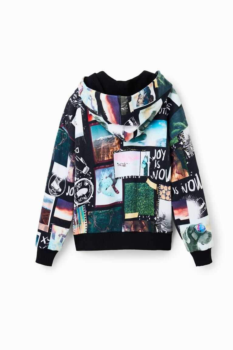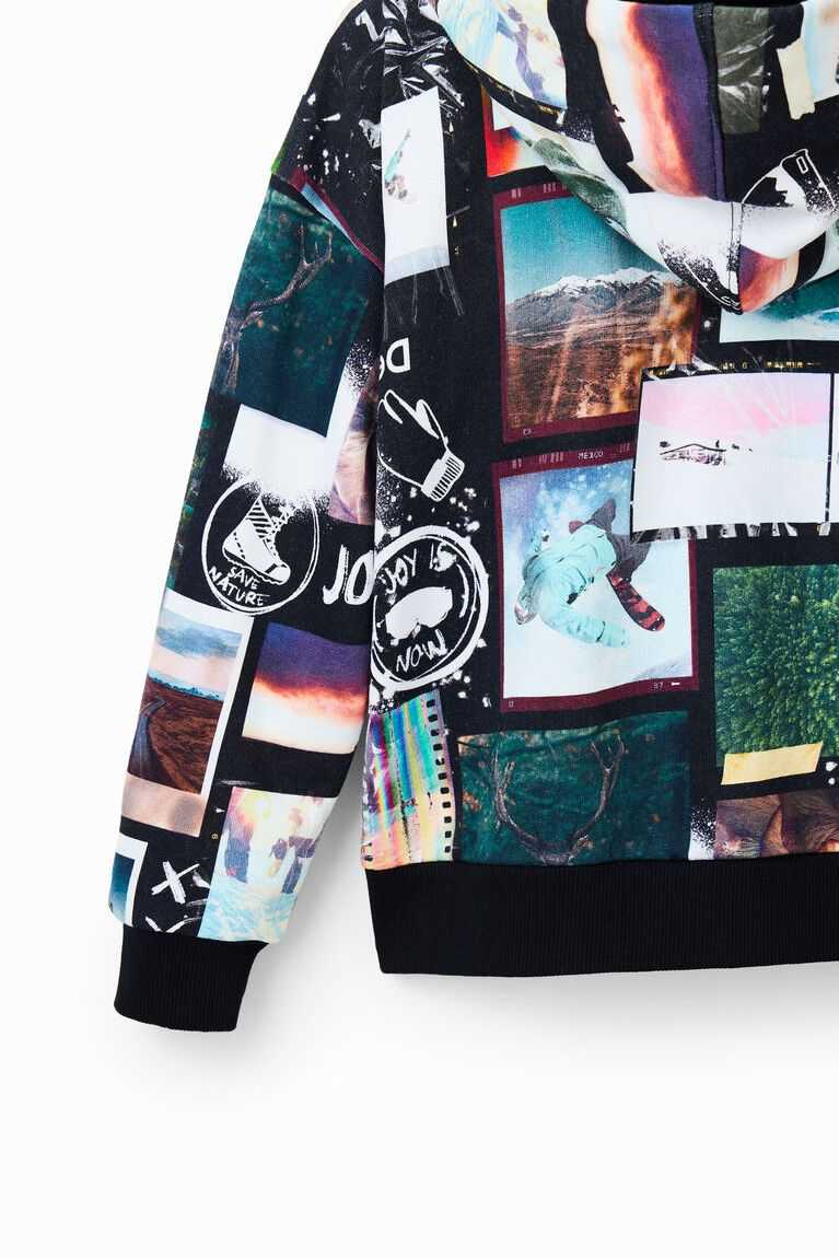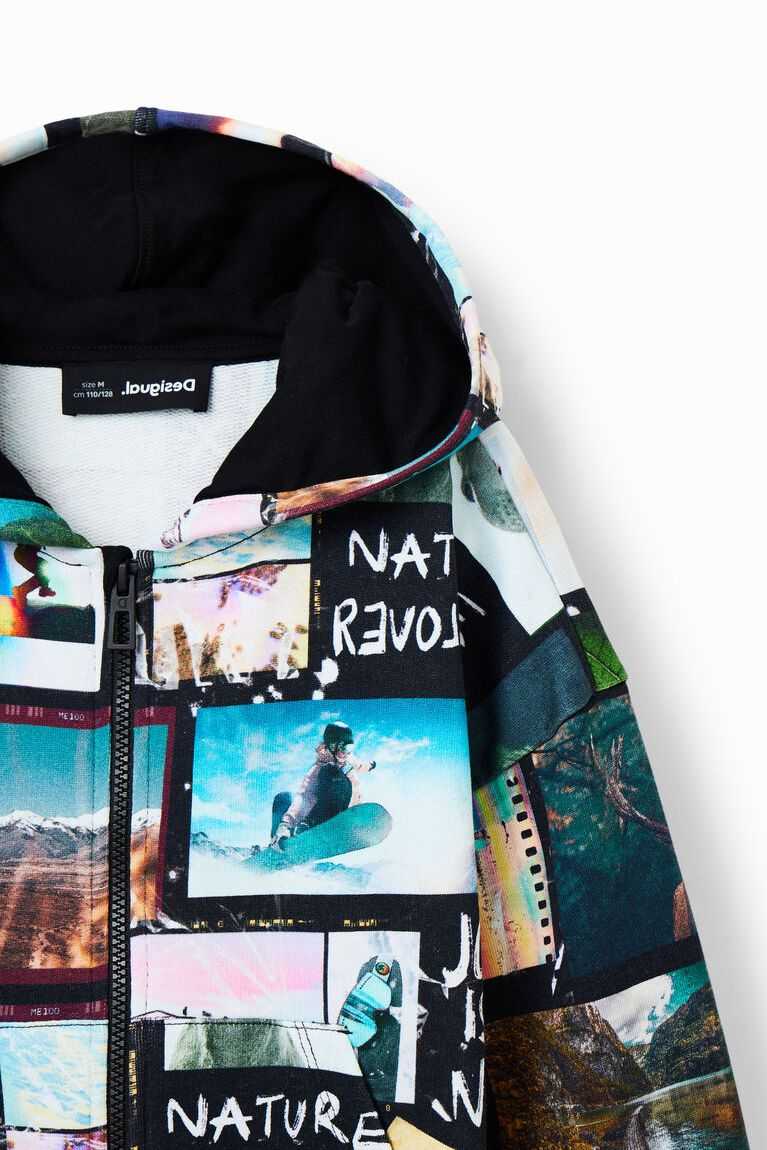 A fun and warm sweatshirt with an all-over digital photo print and an integrated hood.
