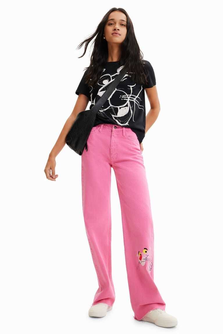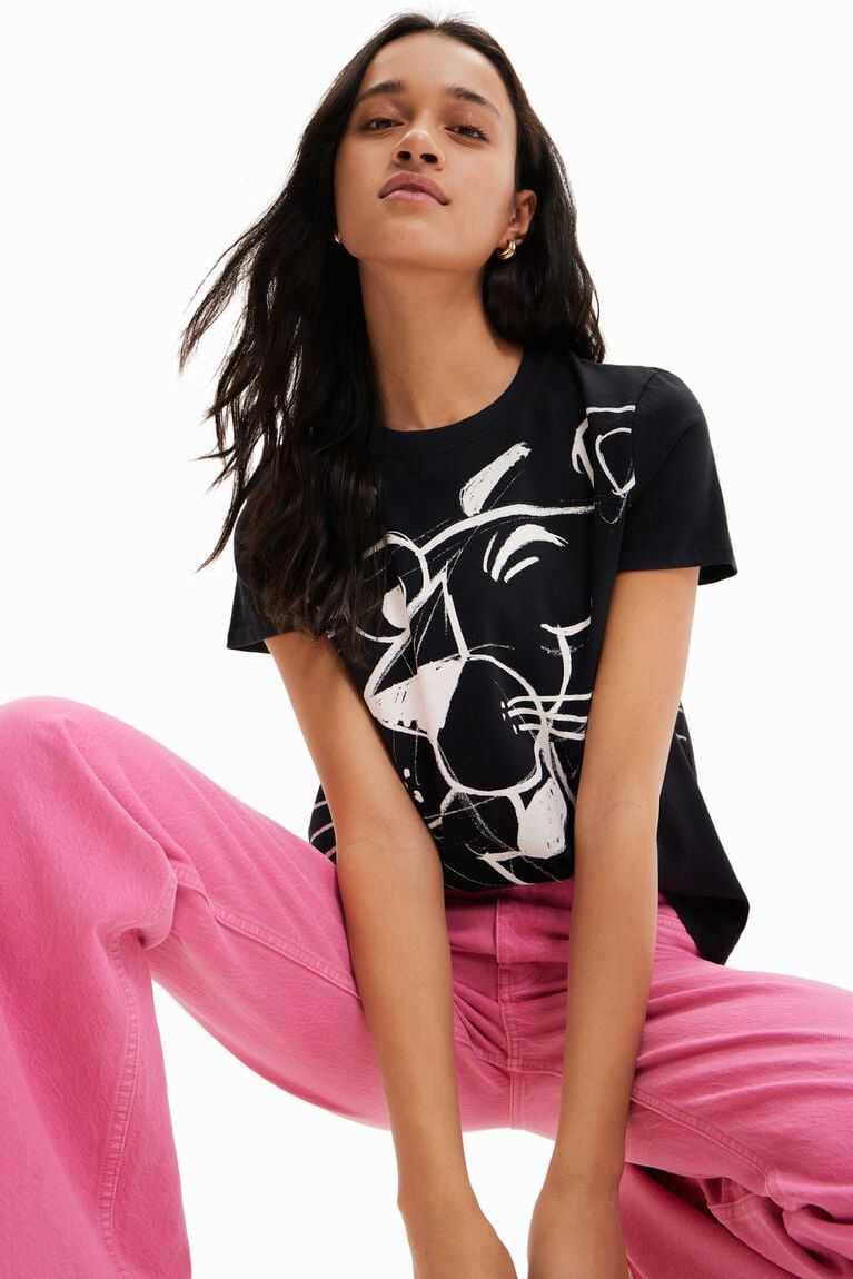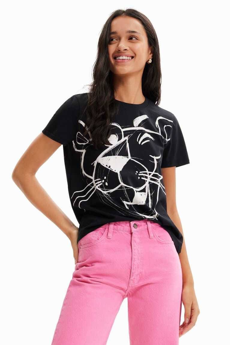 A short-sleeve T-shirt in a washed effect with a contrasting Pink Panther print.