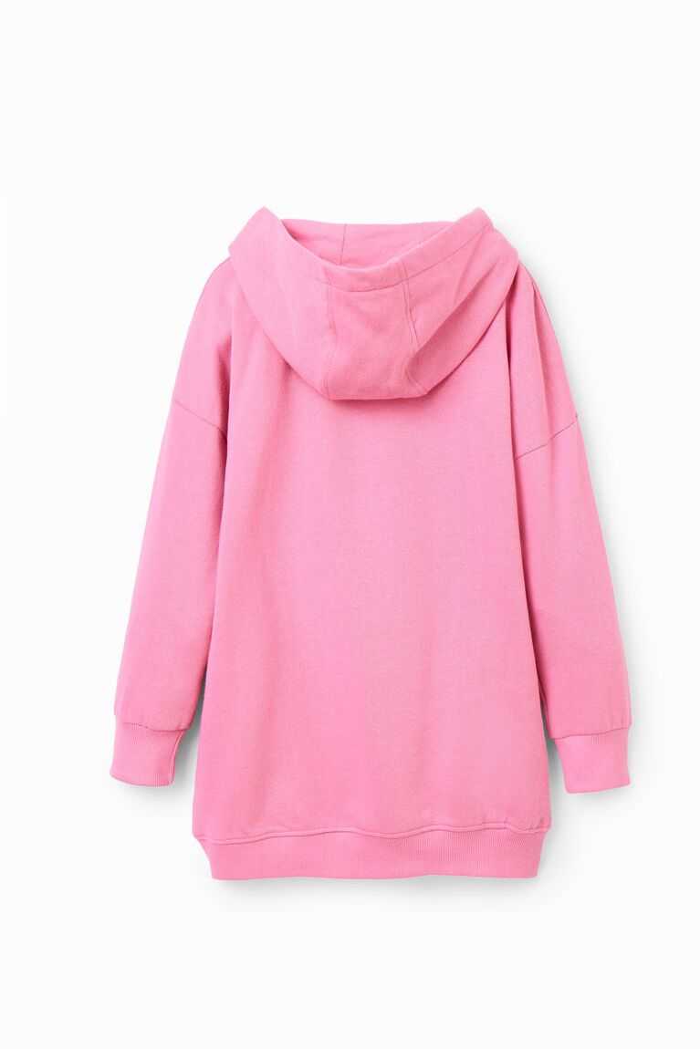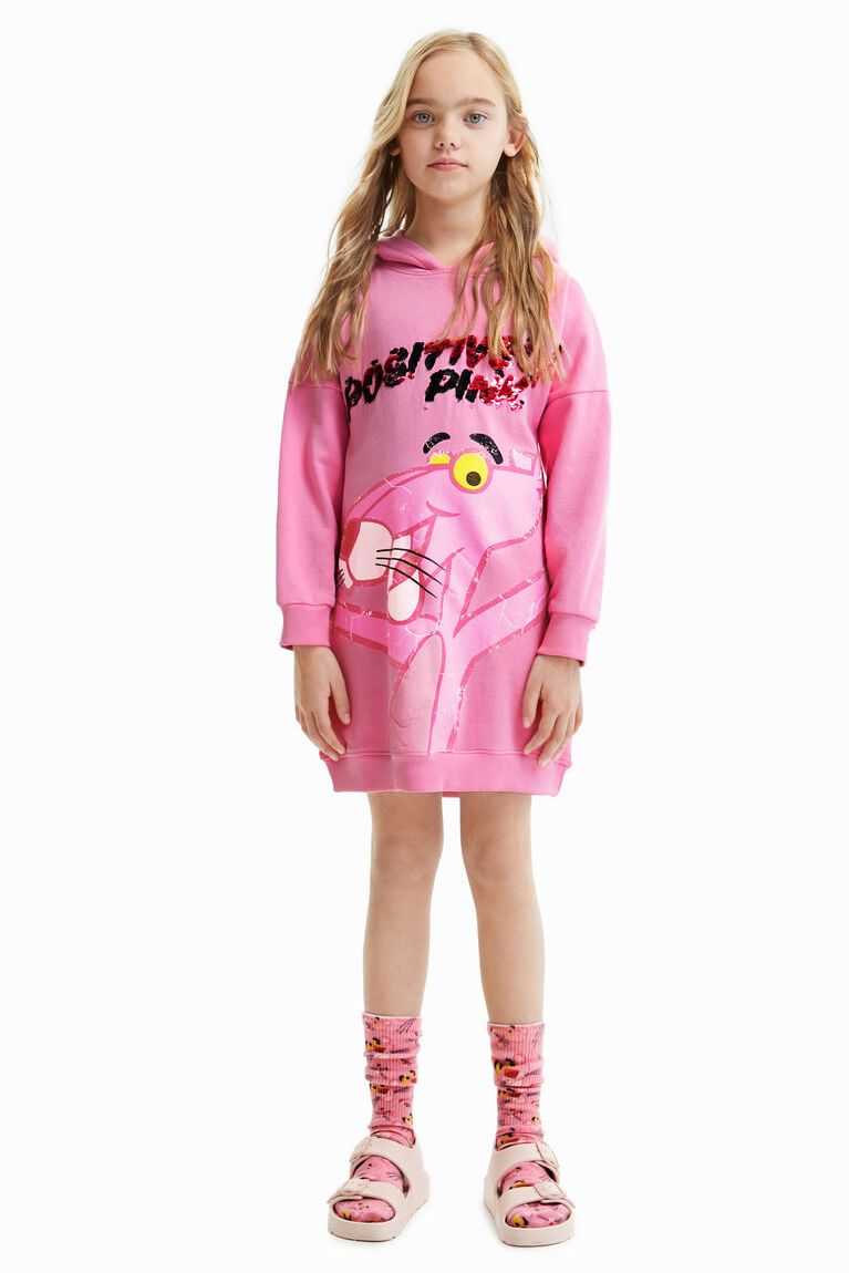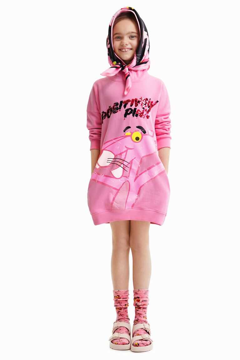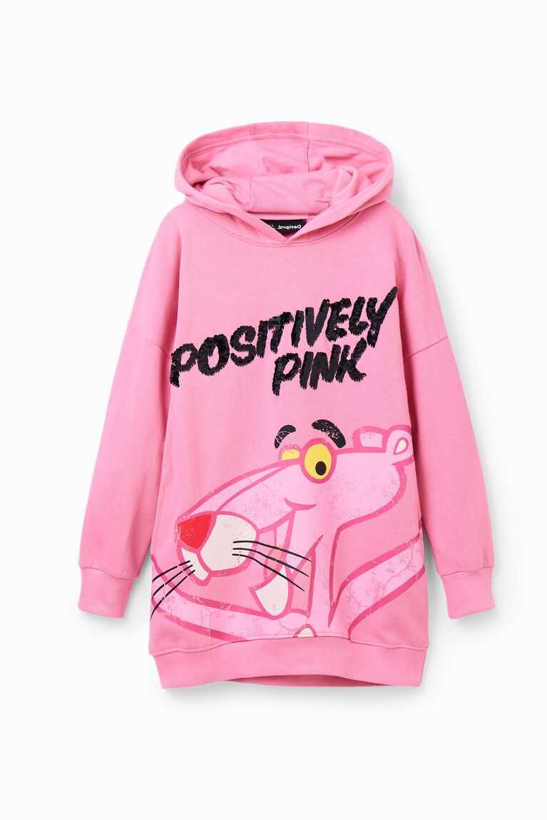 Nothing but pink on this long-sleeve hoodie dress featuring a Pink Panther print and "Positively Pink" message.