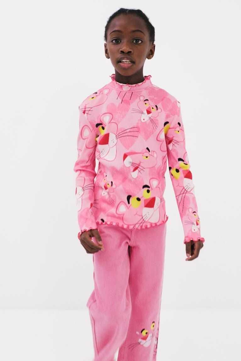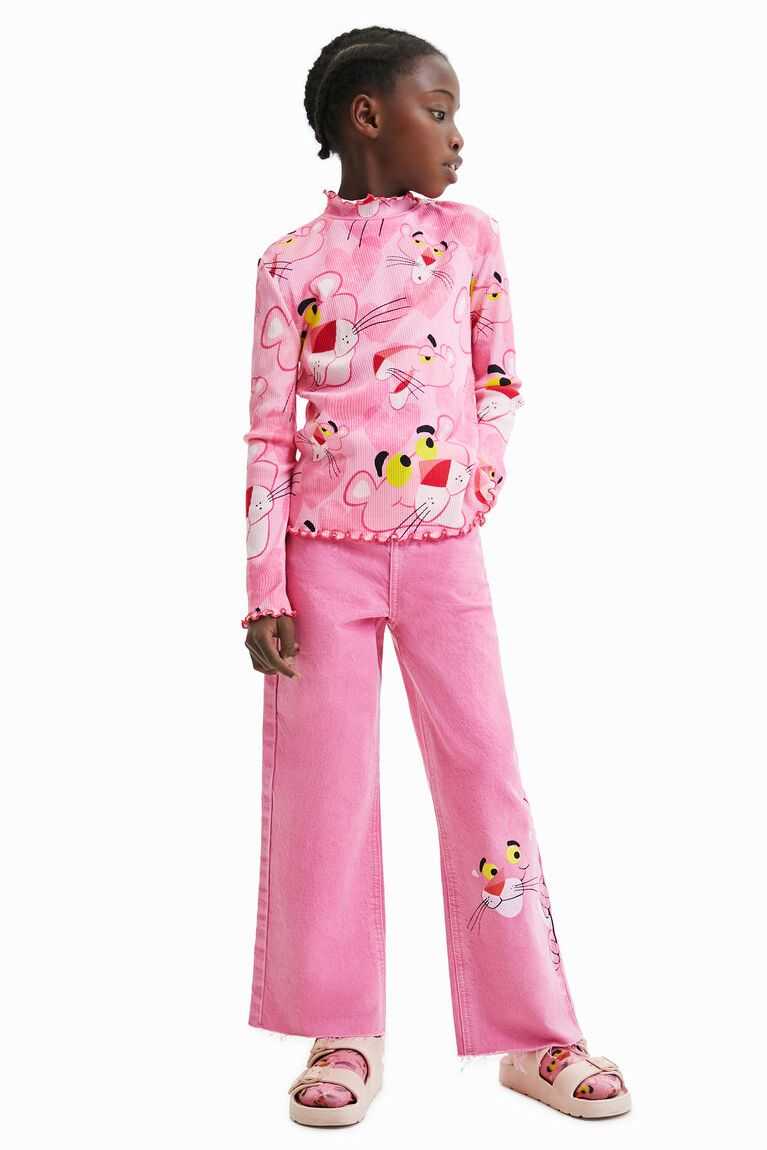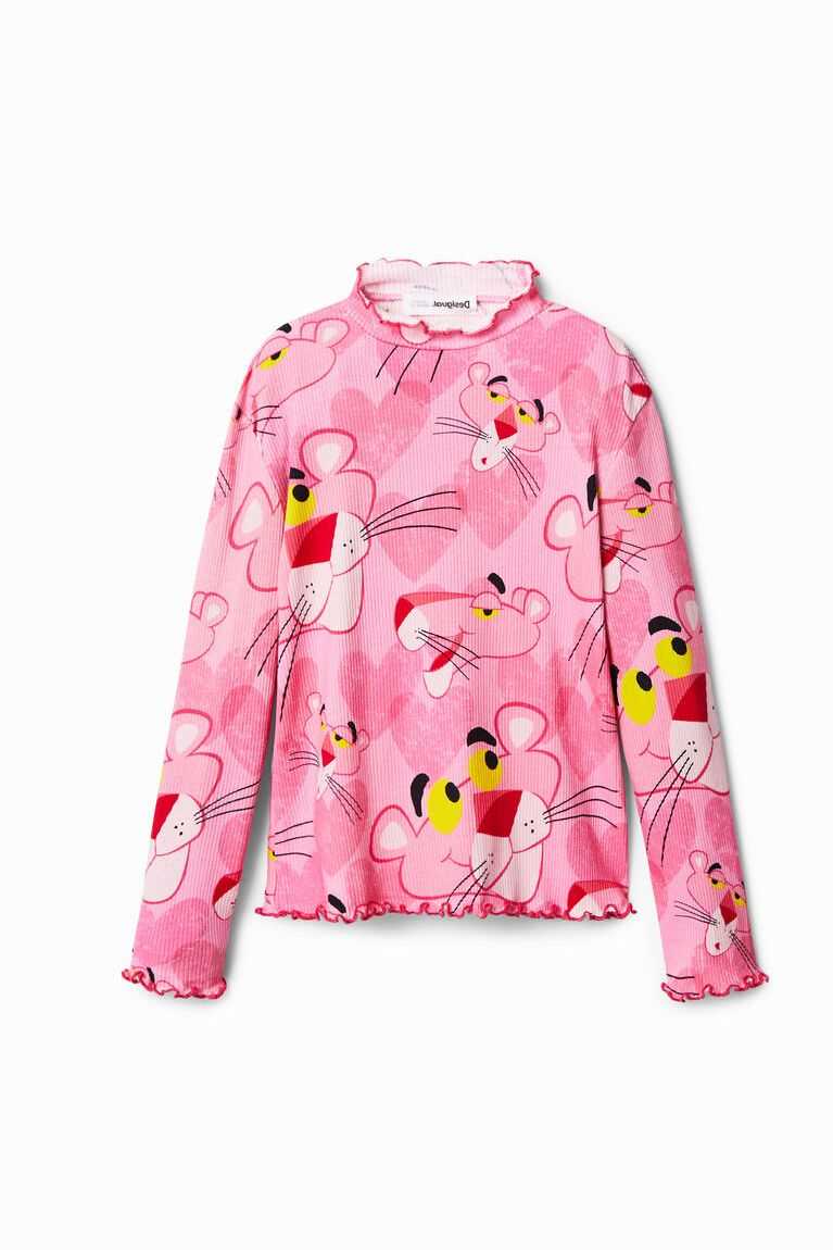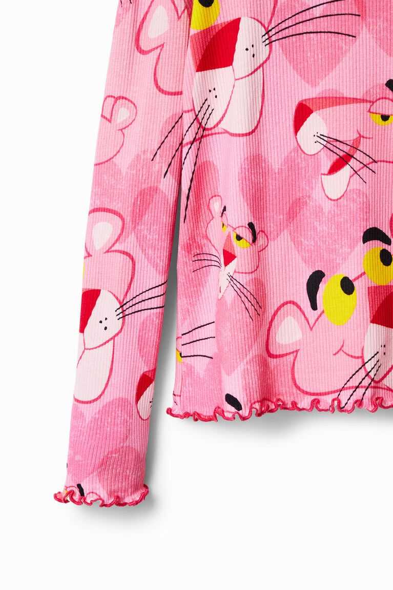 Nothing could be more original and warm than this long-sleeve fitted T-shirt in ribbed cotton with a print featuring the world famous Pink Panther.