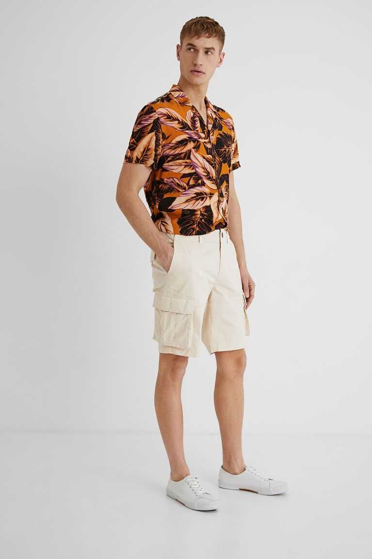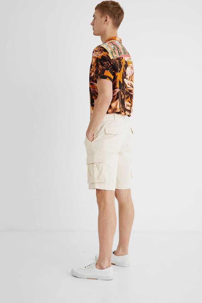 Basic and plain, these cargo Bermuda shorts with side pockets is equally comfortable and combinable. Its composition in cotton and elastane makes it very easy and pleasant to wear.