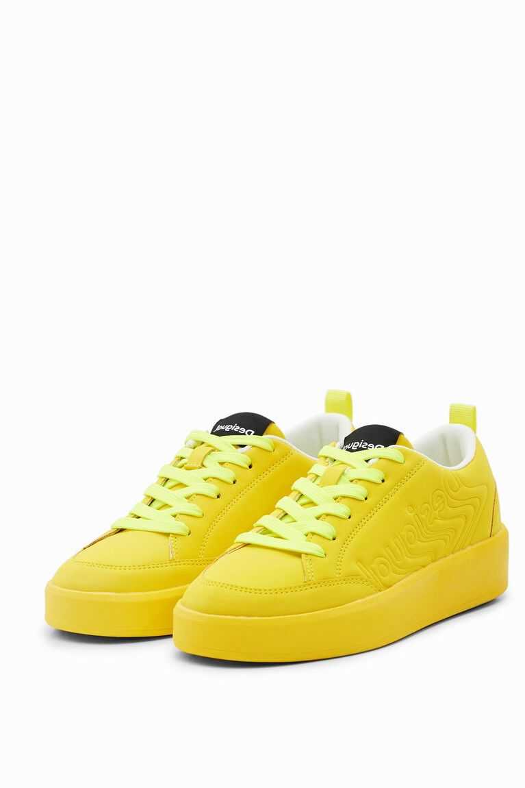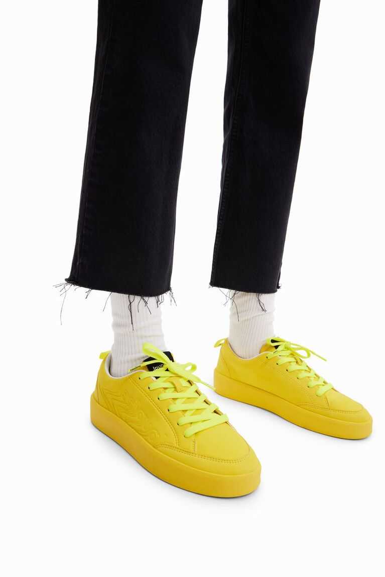 Sneakers in an eye-catching plain colour with a psychedelic logo. They pair perfectly with other accessories from the collection . Featuring fluorescent laces and a recycled rubber sole.