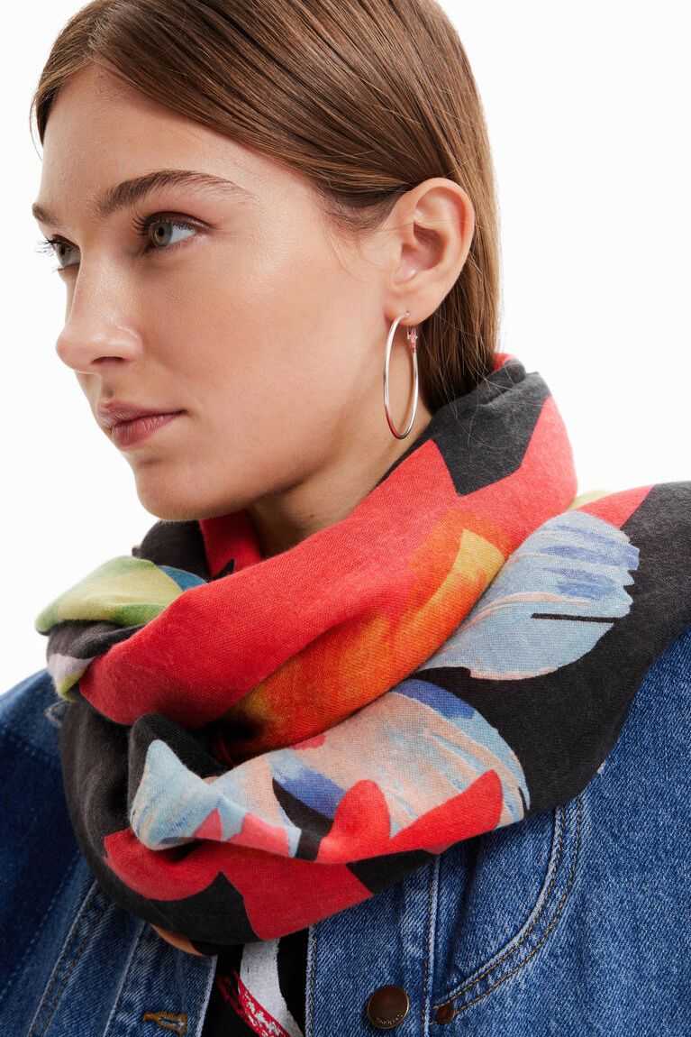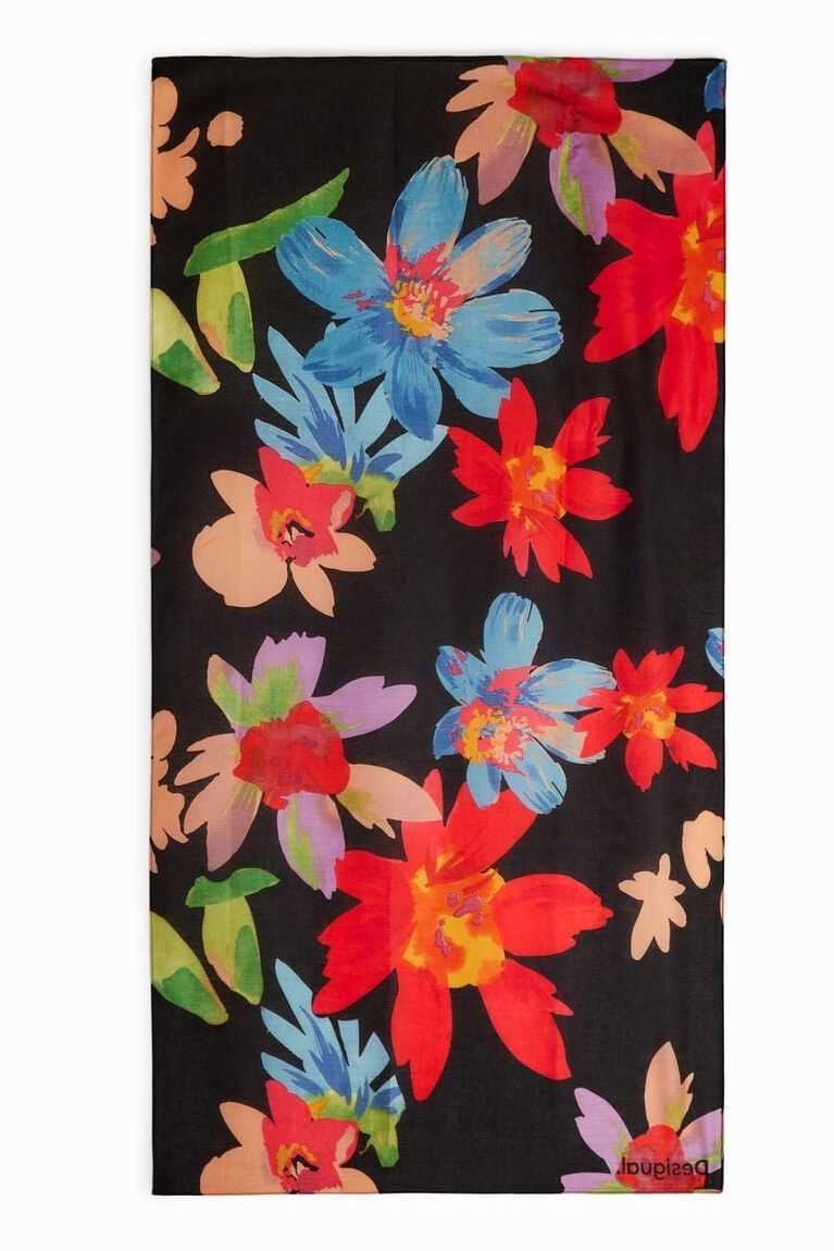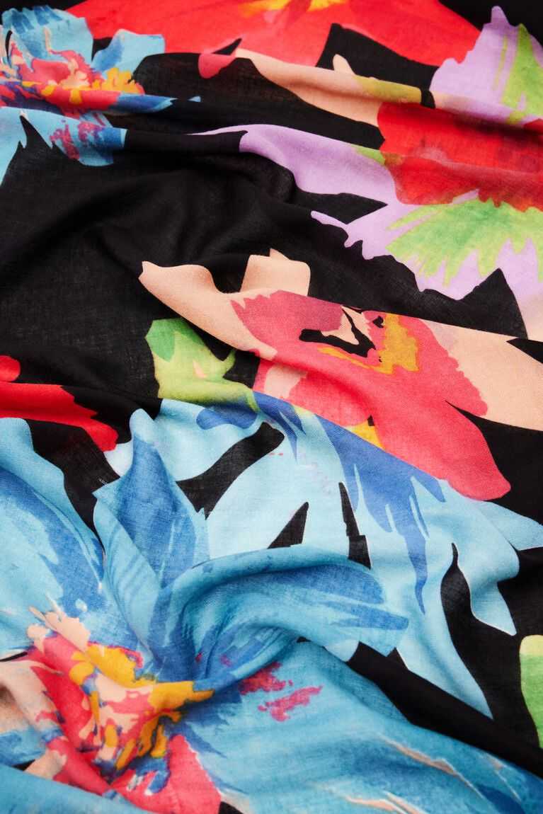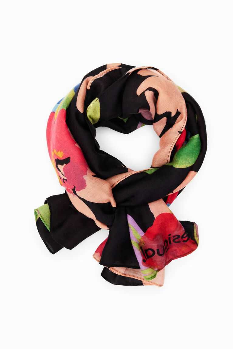 A rectangular foulard in a floral print.