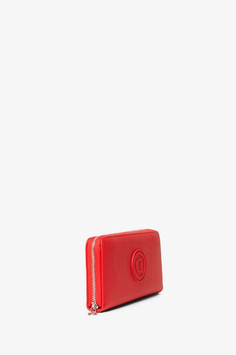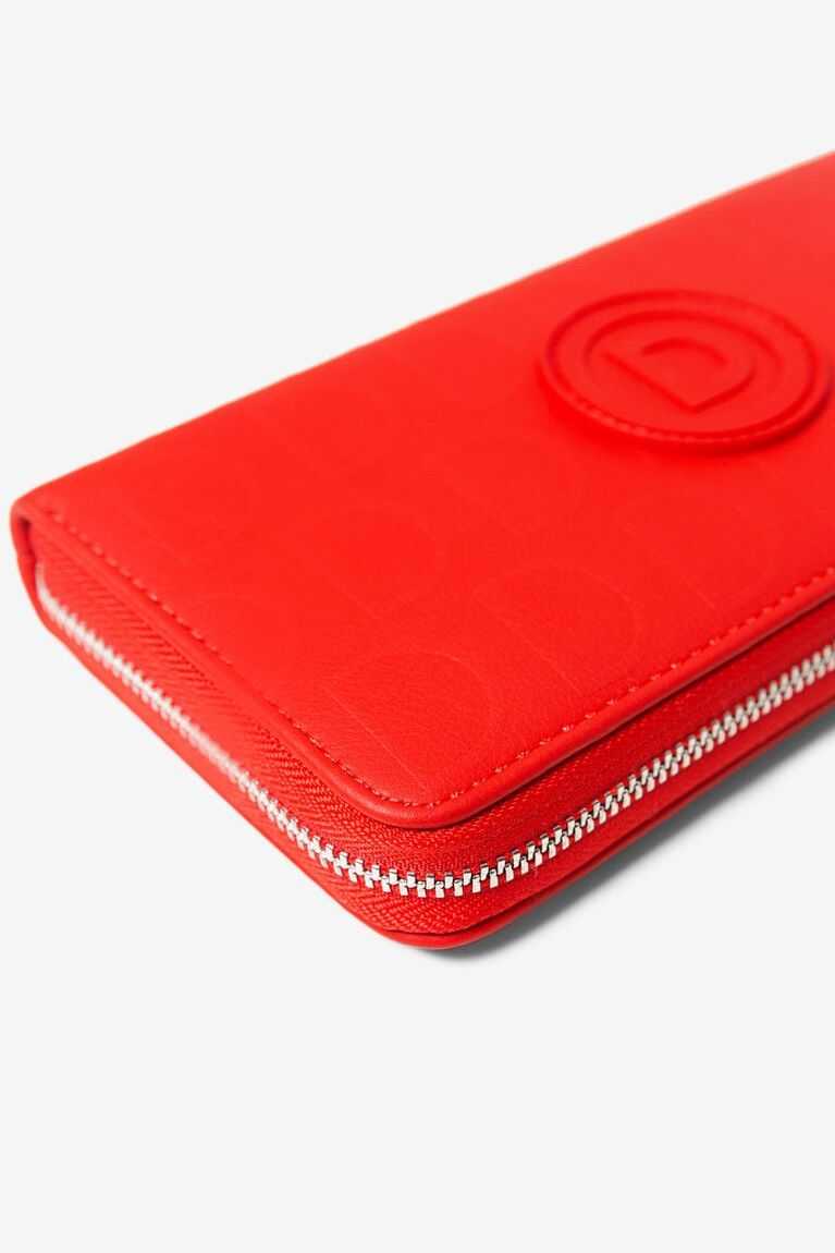 Mono-colour yes, boring never. With this red coin purse in logomania you'll have an elegant rectangular accessory with the reverse D of Desigual printed in relief subtly on the fabric, and also with a central rubberized one representing the brand. A total coin purse to be in fashion.