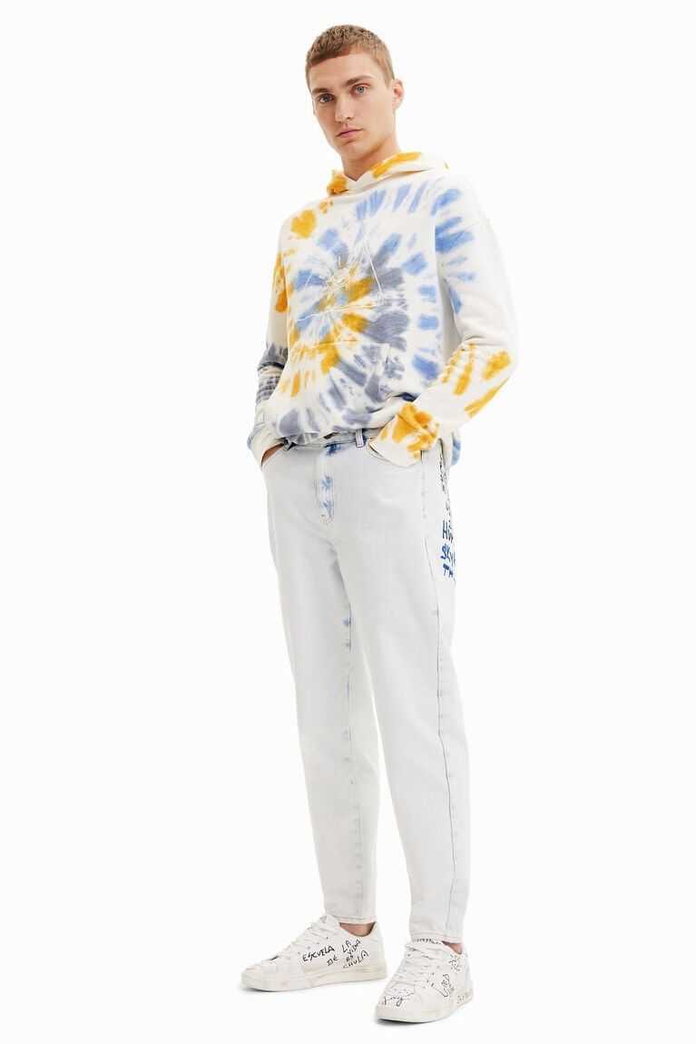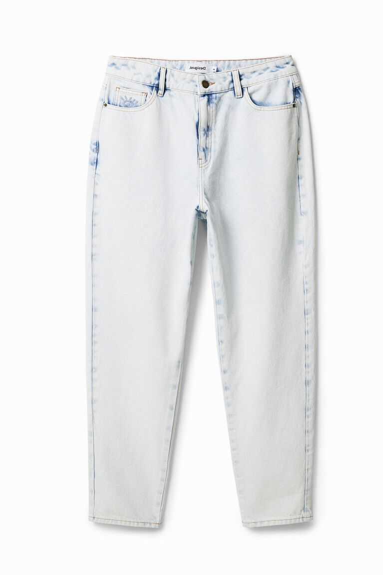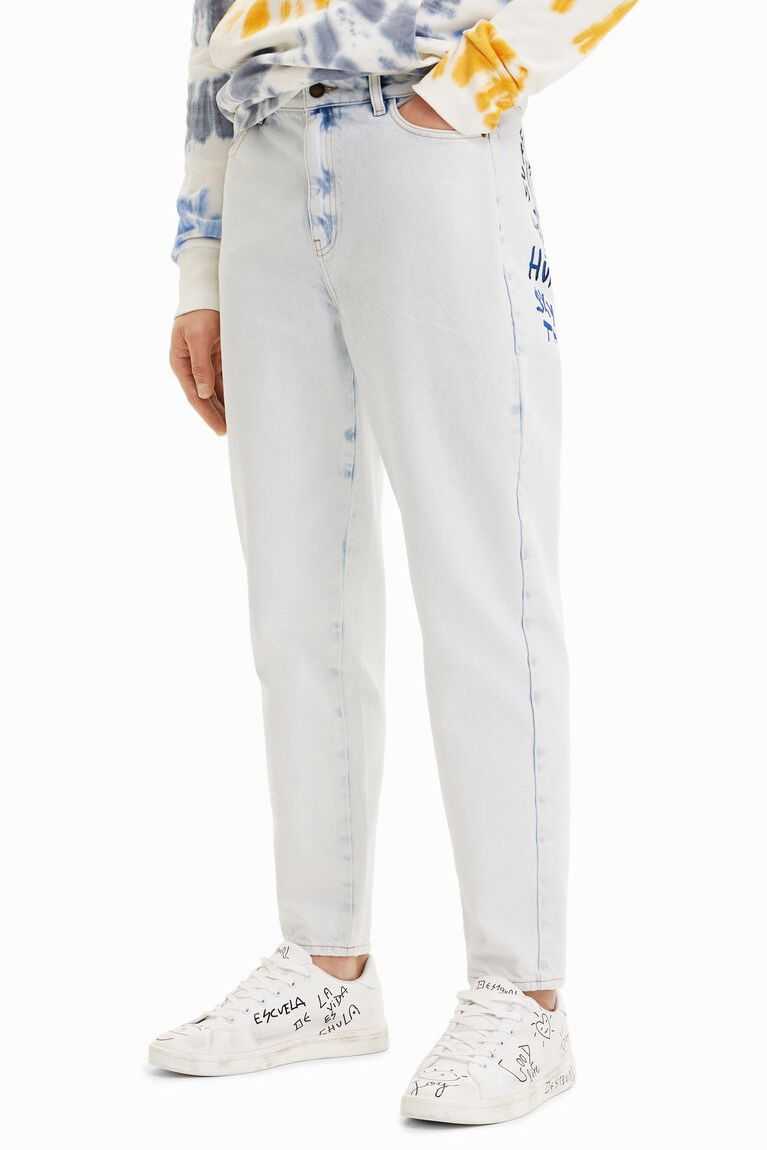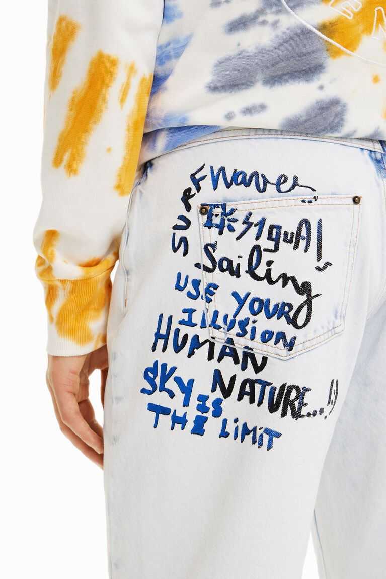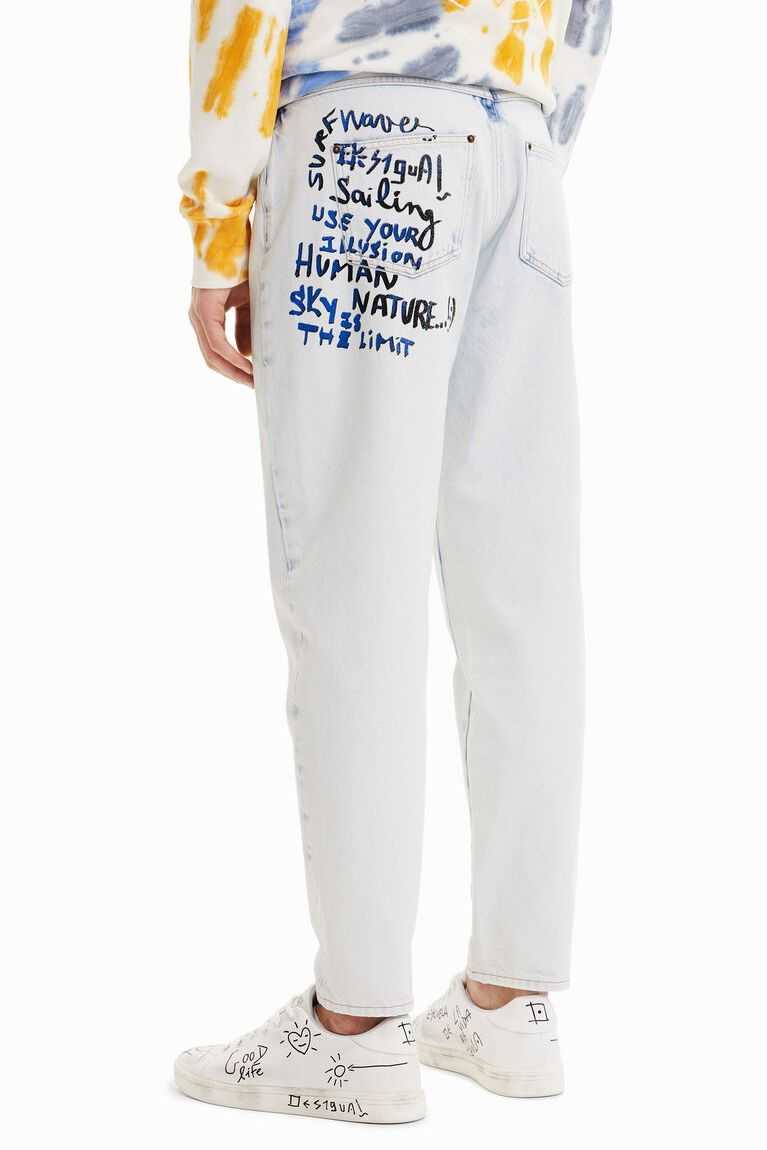 Five-pocket cotton jeans in a relaxed fit with a positional lettering print on the back pocket.
