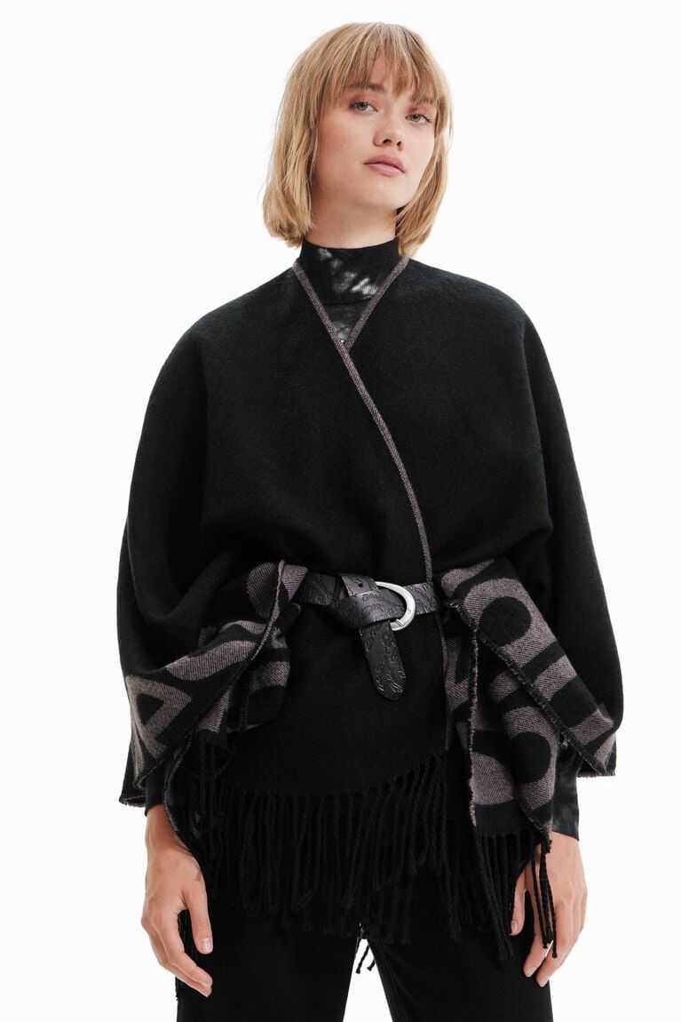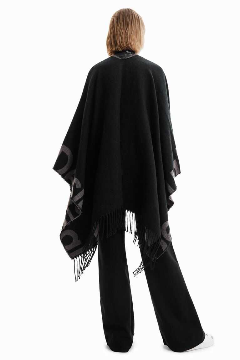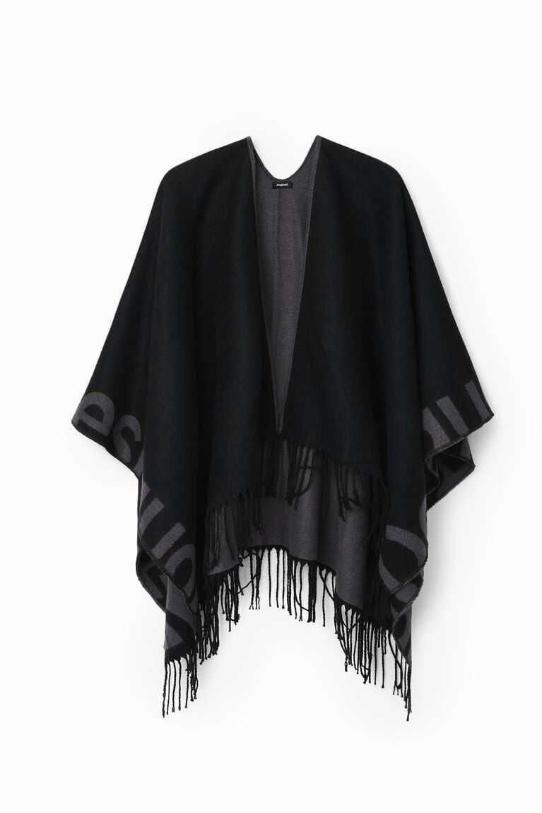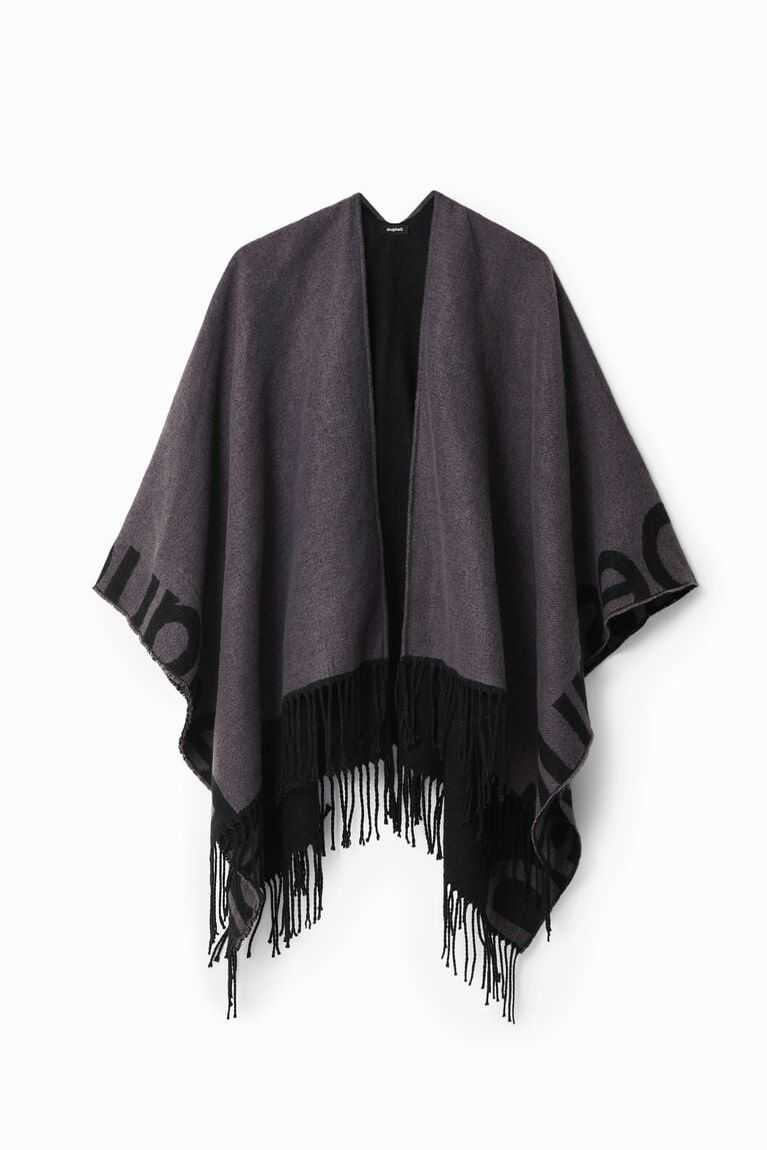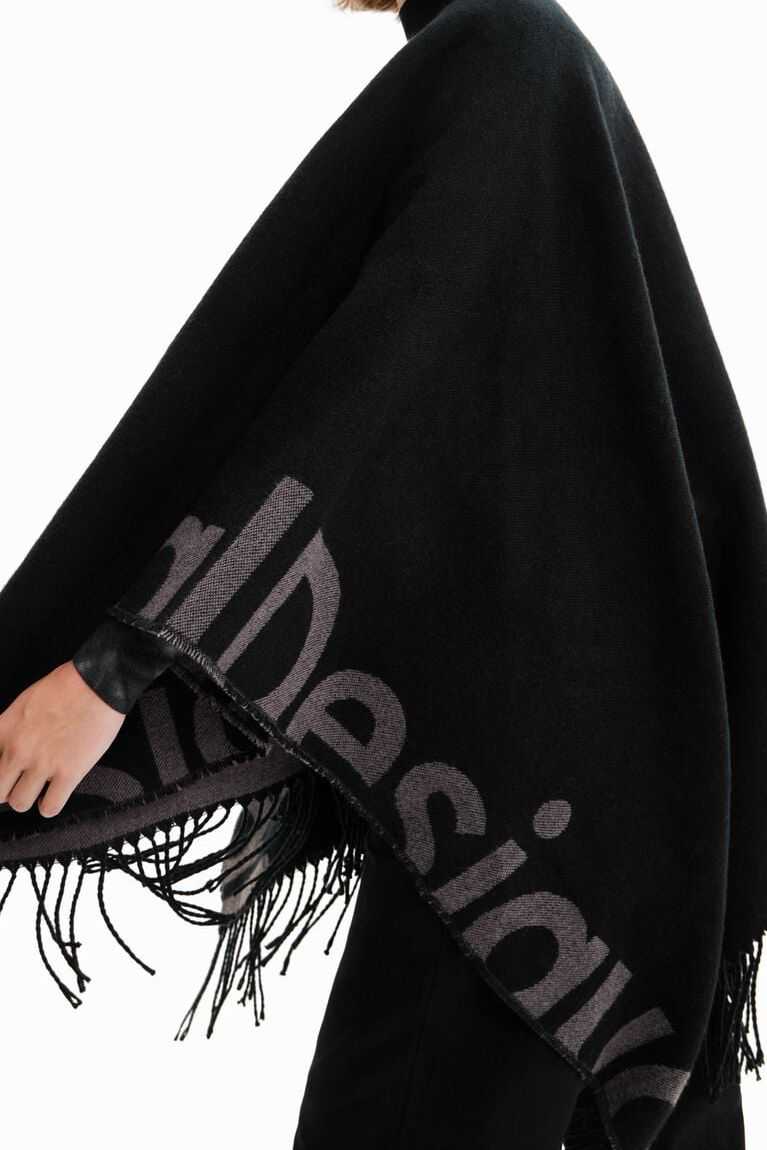 Reversible poncho with a Desigual logo running along the hem in large letters. Longer for a more contemporary look. Made from recycled polyester.