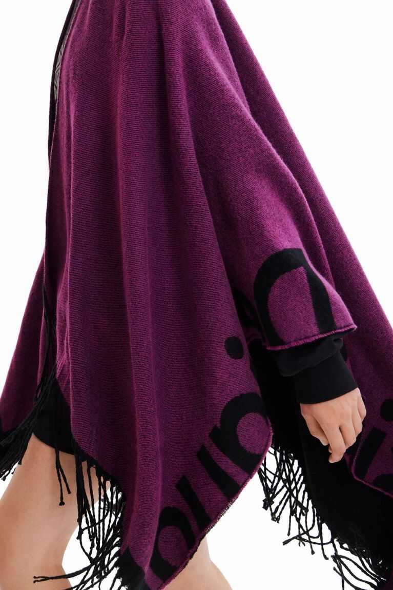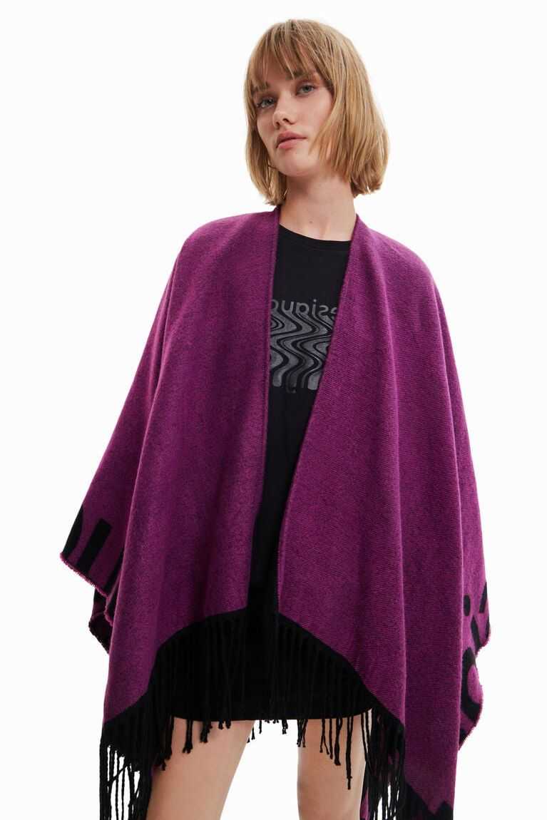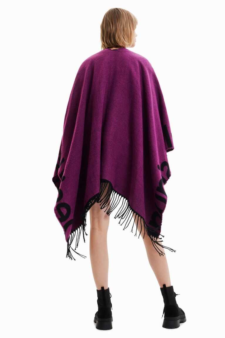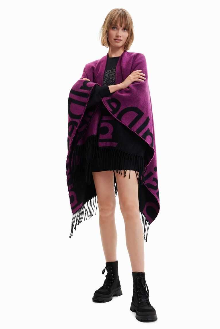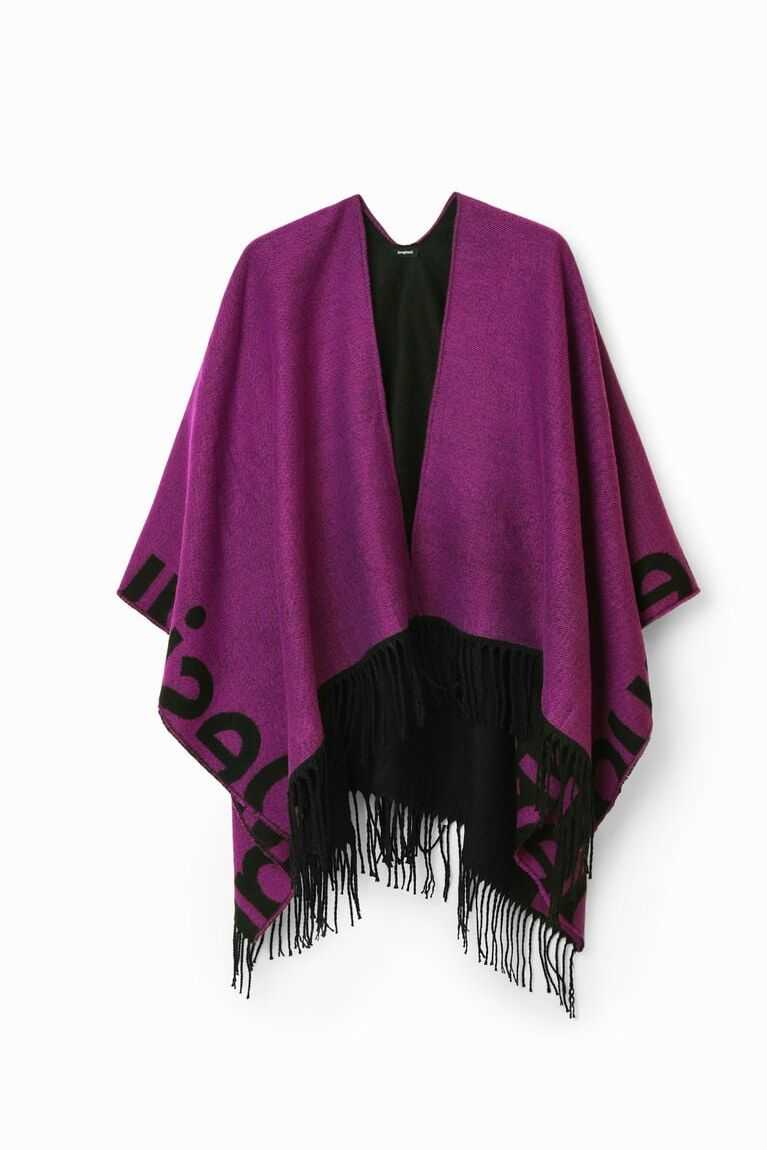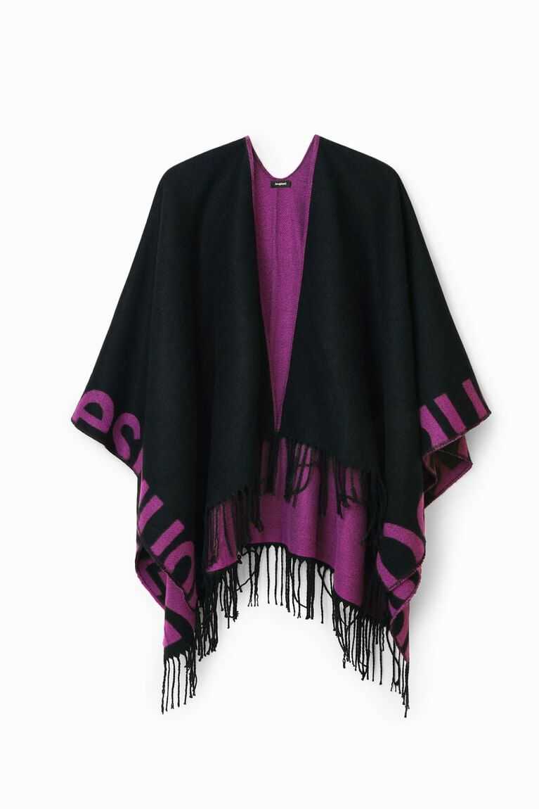 Reversible poncho with a Desigual logo running along the hem in large letters. Longer for a more contemporary look. Made from recycled polyester.
