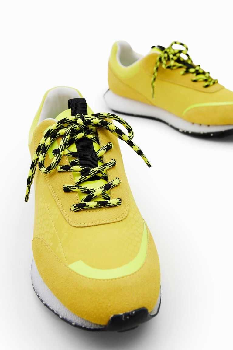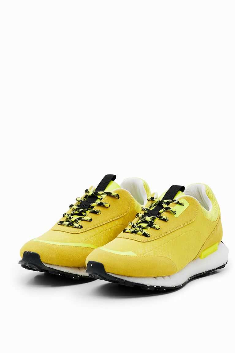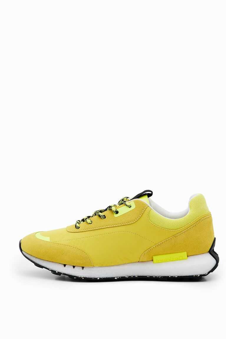 Very light and flexible urban sneakers with a running sole embossed with logos and messages from the collection. Featuring fluorescent, trekking and rubberised details.