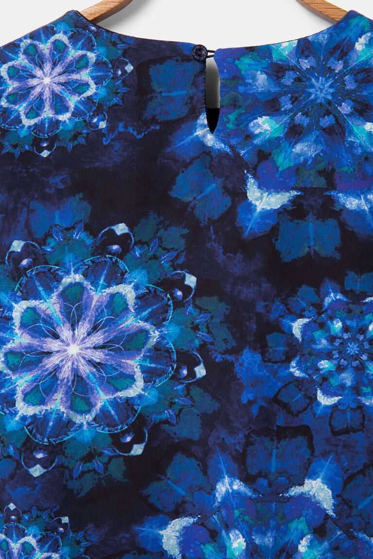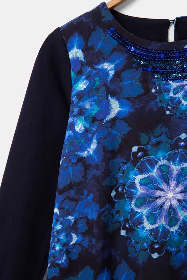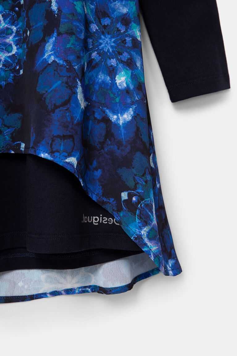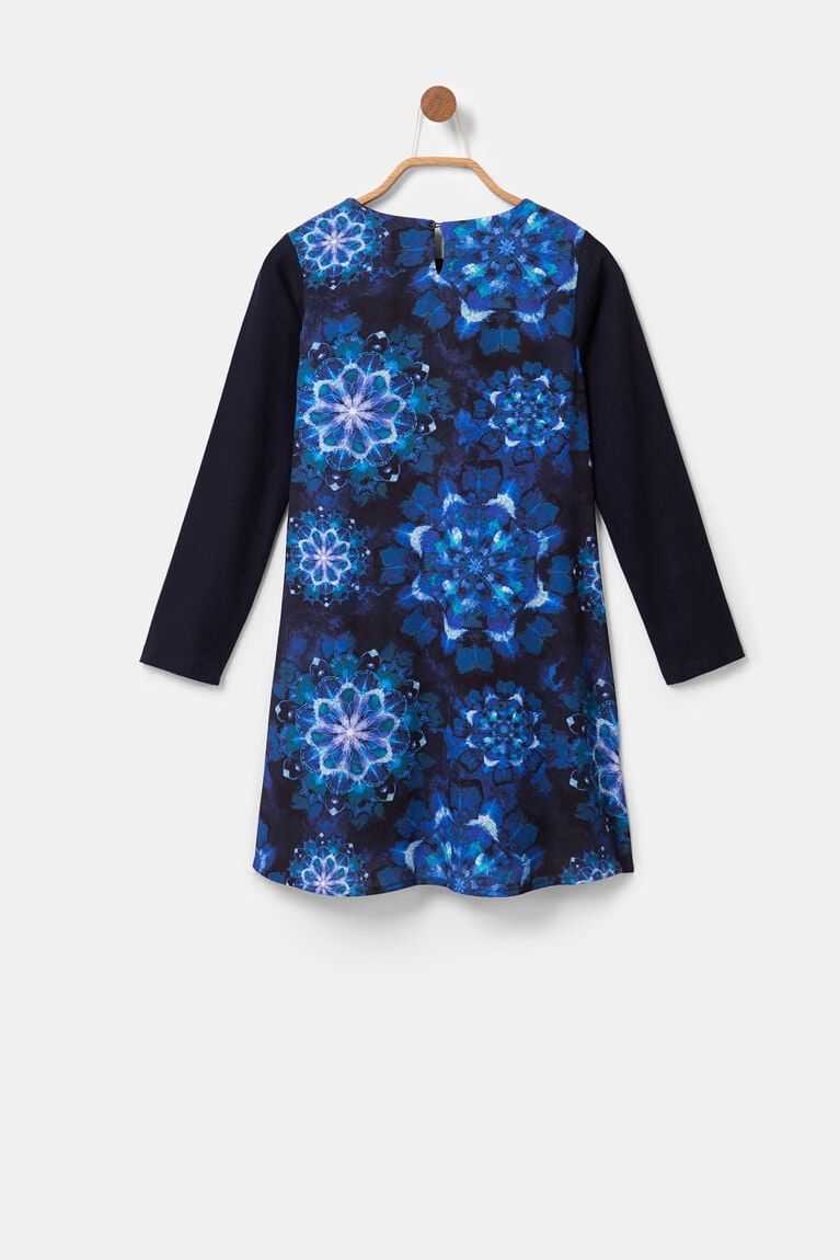 It came into fashion in the 70s, in the 90s it came back with force, and now tie-dye is fully in fashion! A dress for the youngest to be trendy. With a fitted layer and lower long sleeve and another upper one of straps with print of blue and green mandalas in tie-dye effect.