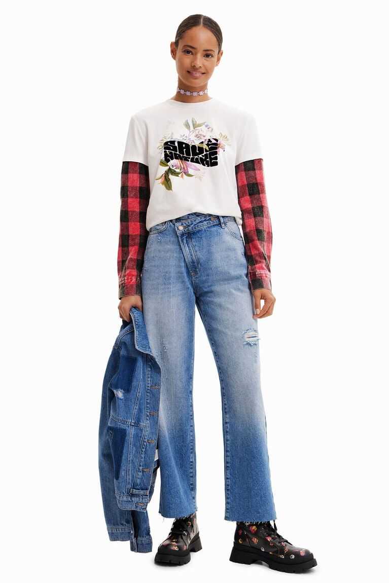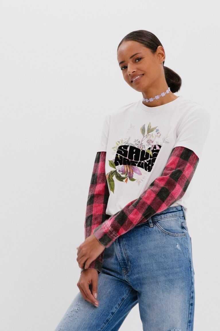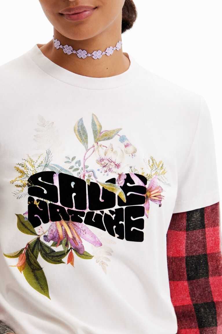 A basic T-shirt with a twist: an embossed velvety "Save Nature" message on the chest with a floral print. Made from cotton.