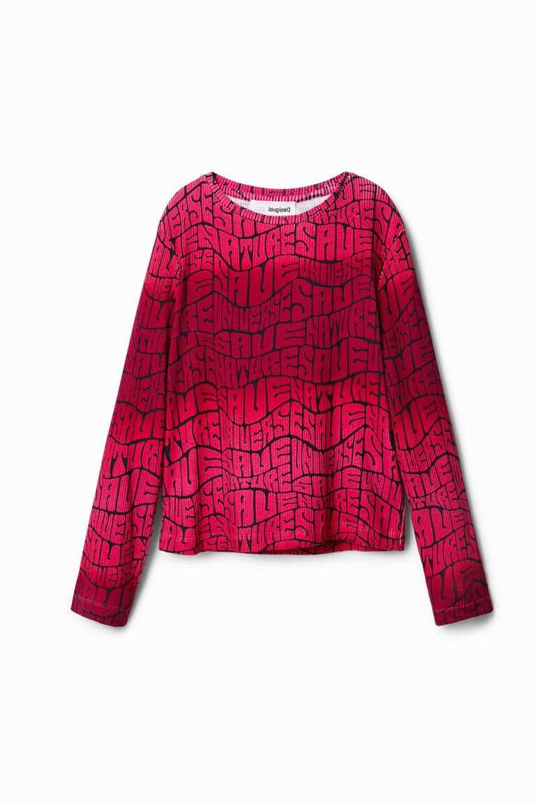 The gradient "Save Nature" print brings a unique touch to this fitted long-sleeve ribbed T-shirt.