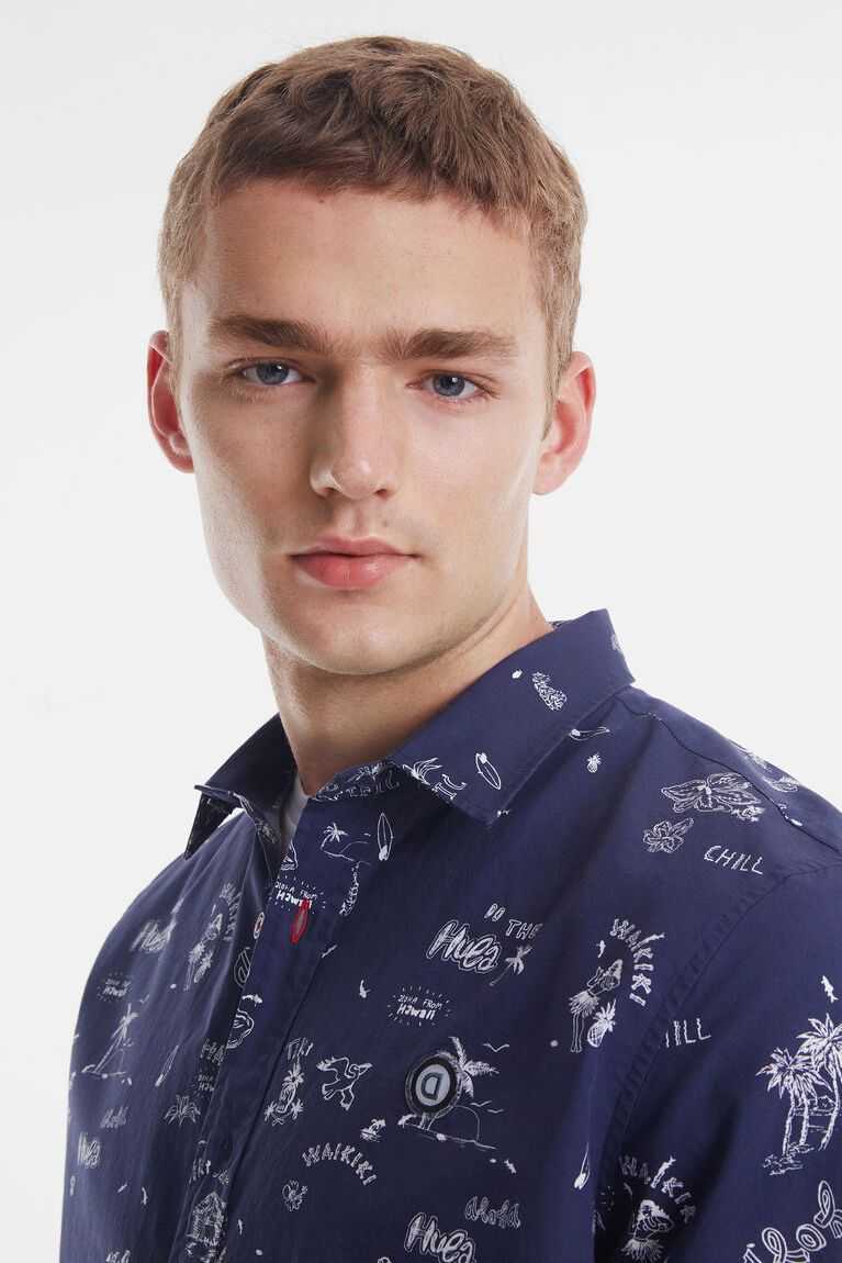 If you make a getaway and plan your holidays, this shirt must not be missing from your suitcase. Its design of Hawaiian inspiration with palm trees, hibiscus, dancers, messages make it very appealing. A cool, light and comfortable shirt thanks to its cotton fabric.
