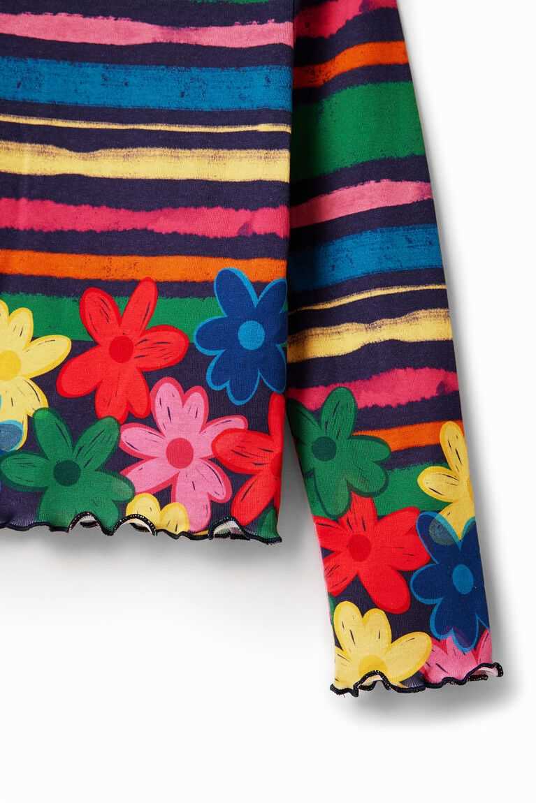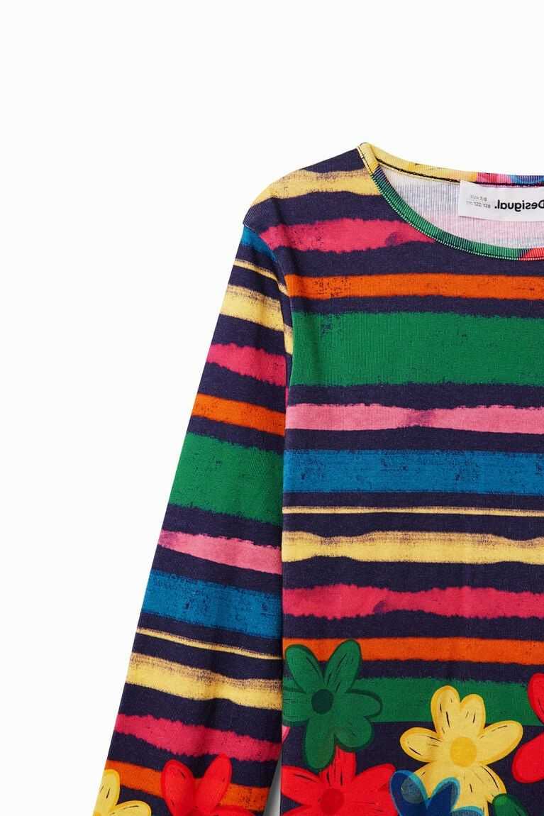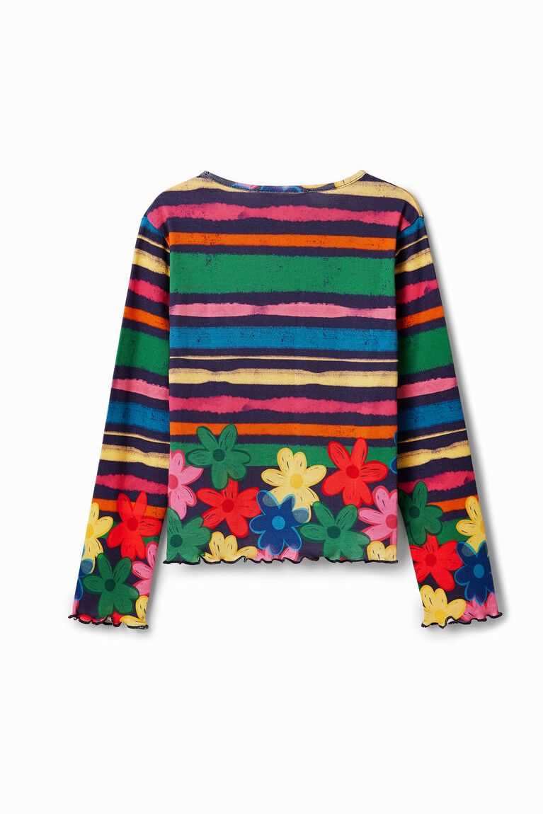 Liven up your little one's wardrobe with this colourful long-sleeve fitted T-shirt with a stripes and flowers print in a hand-painted effect.