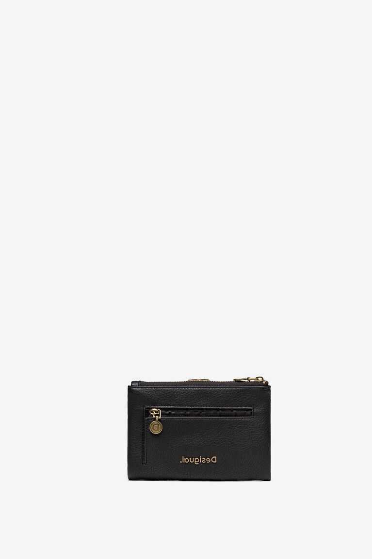 Small black leather effect coin wallet/card holder with embroidery of big African mandala. New Desigual Accessories SS20 collection. Free delivery and returns.