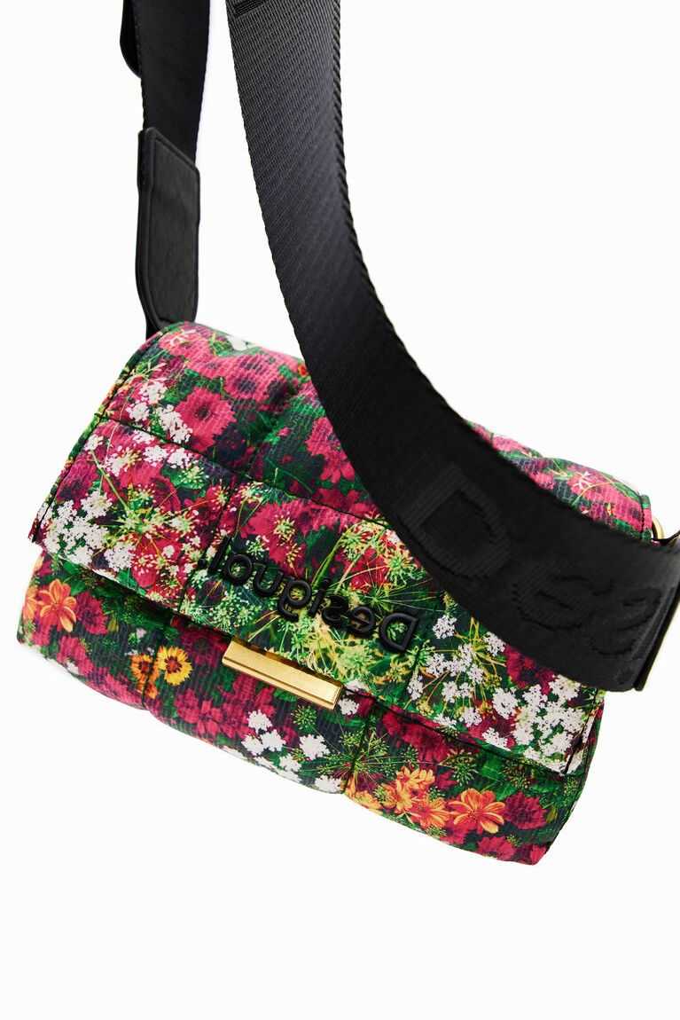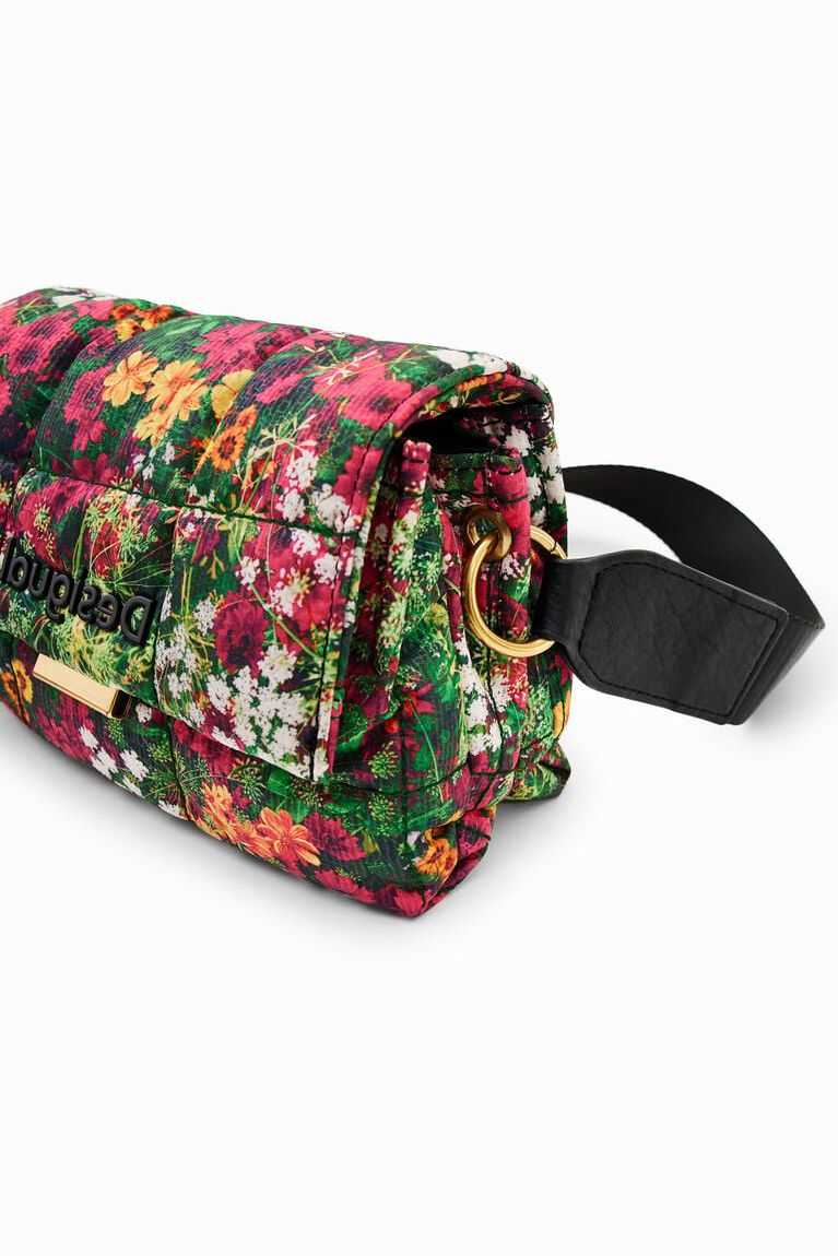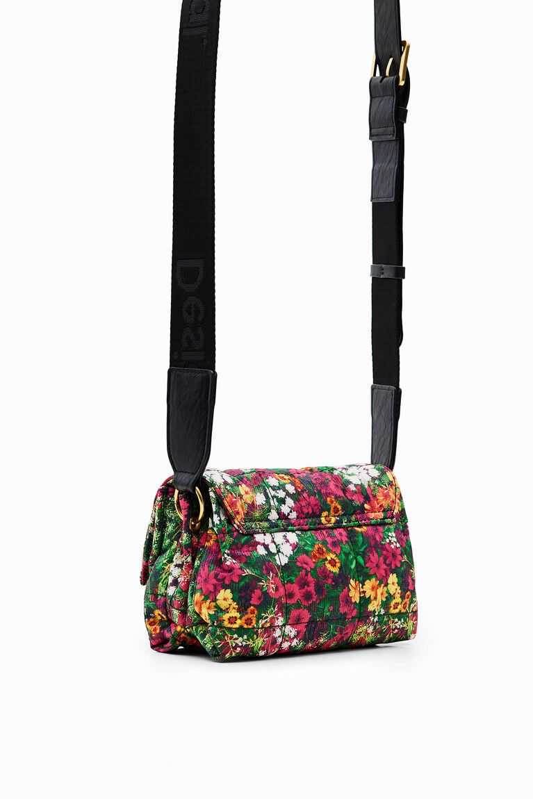 A small and very light crossbody bag. Adorned with an all-over floral print of mini flowers to match many items from the collection. Multiple interior compartments.