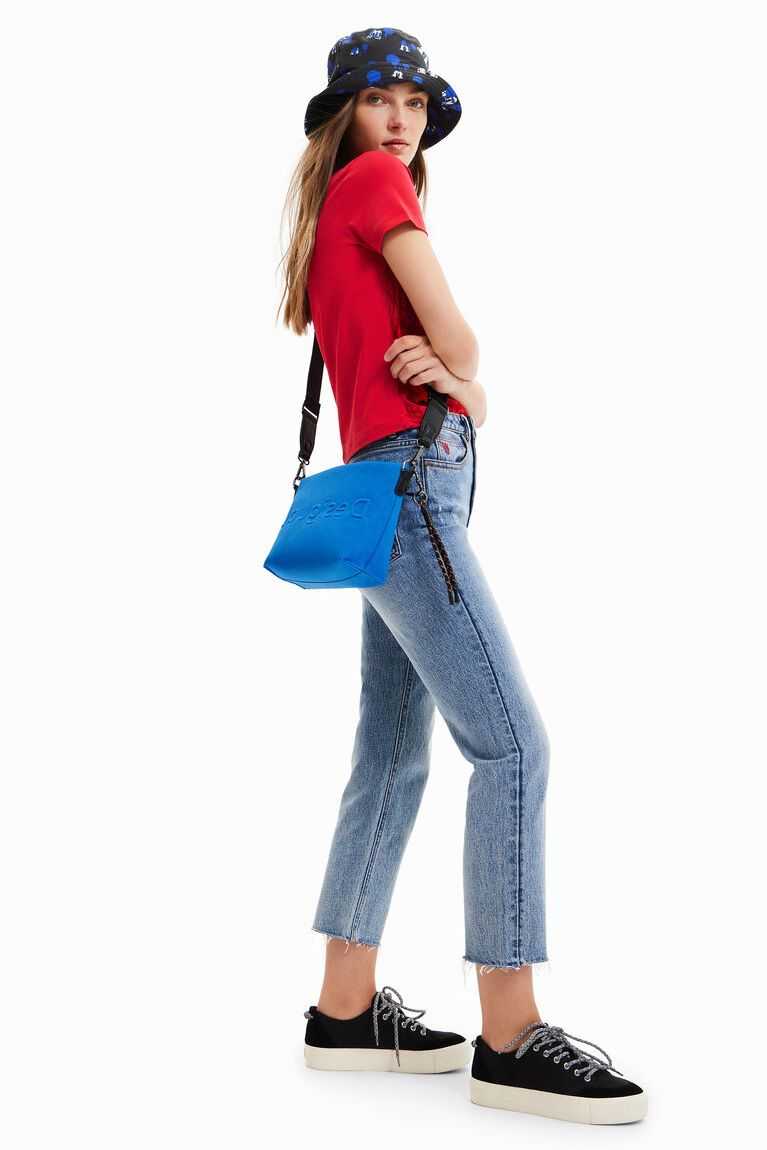 A very light crossbody bag with a large capacity and an embossed star design on the outside. It has several straps for added comfort.