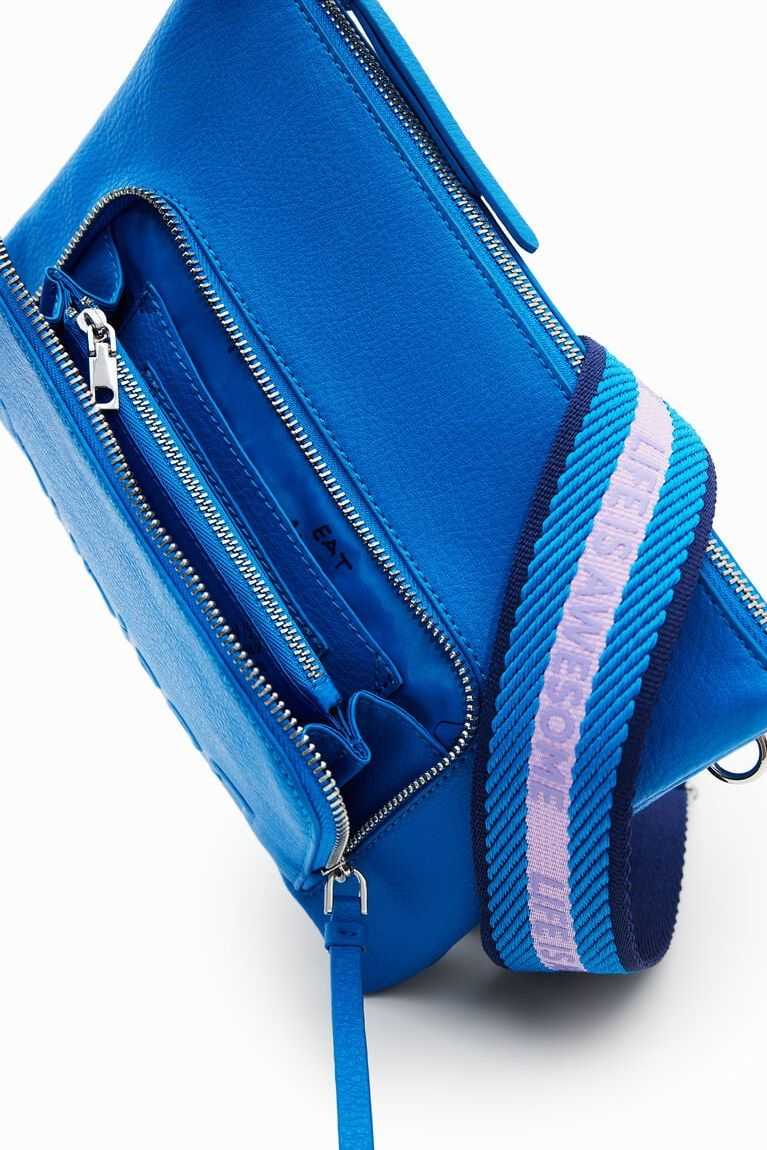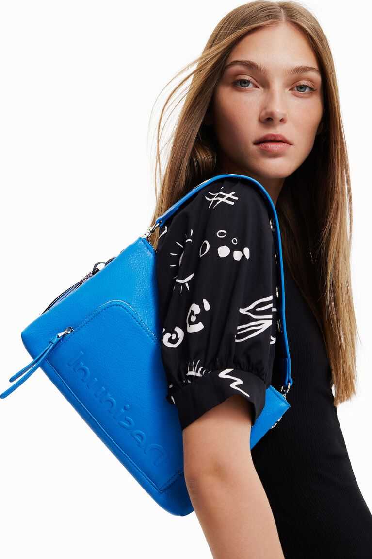Plain-colour faux-leather crossbody bag with an embossed half logo on the front. Can be used in many ways thanks to its different straps.