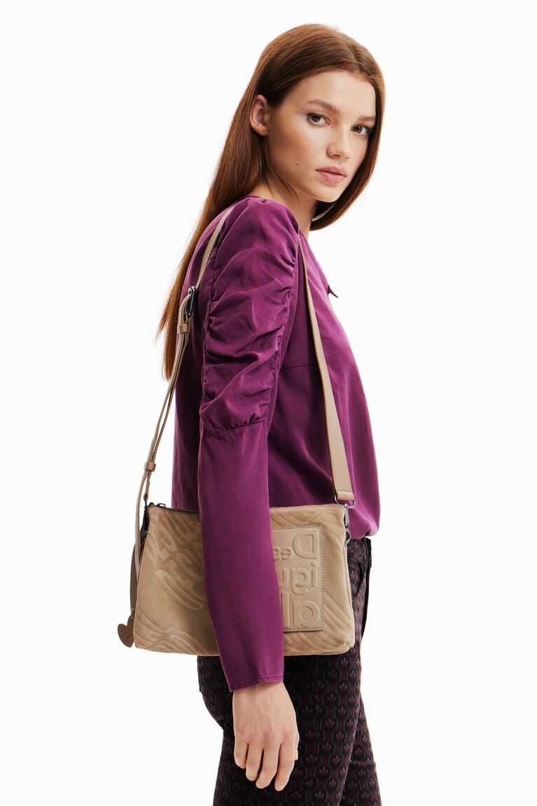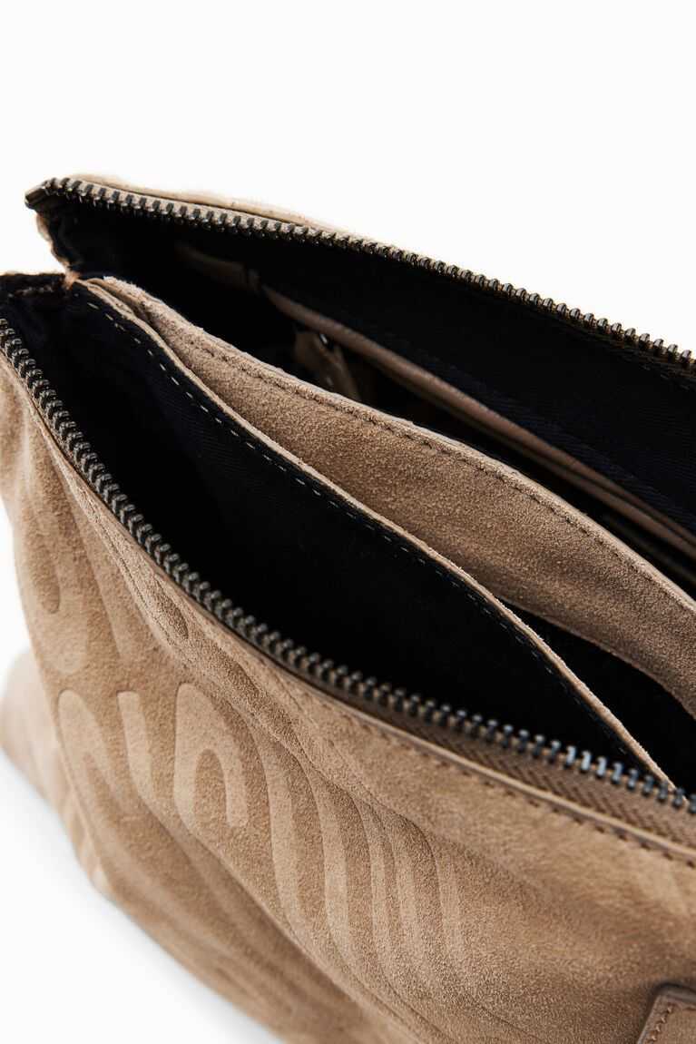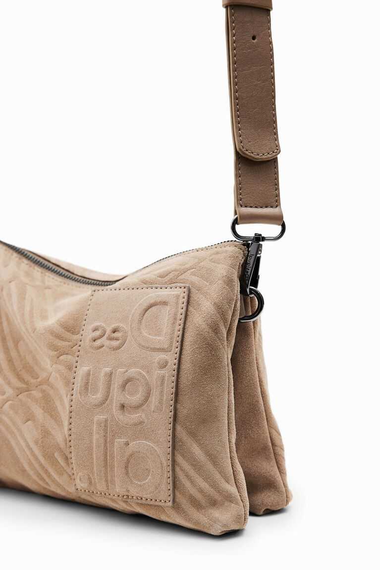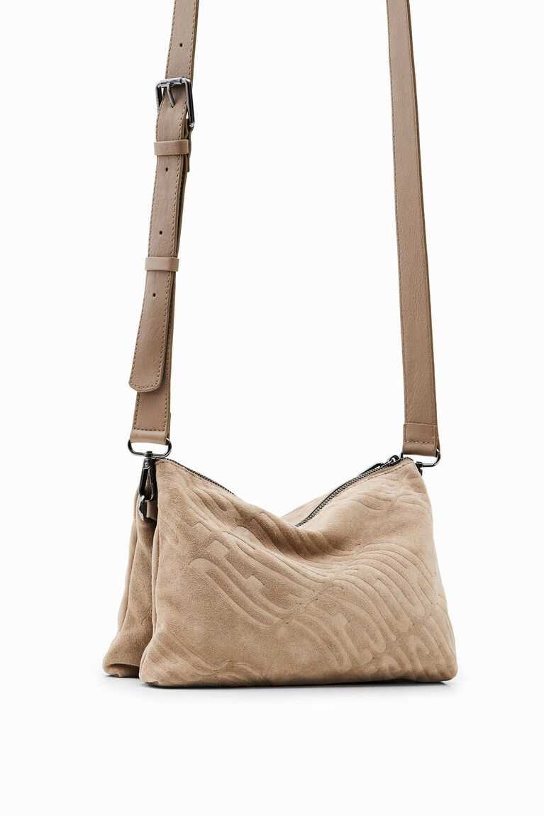 A large-capacity crossbody bag made from certified leather with psychedelic logos. Light, flexible and very soft to the touch.