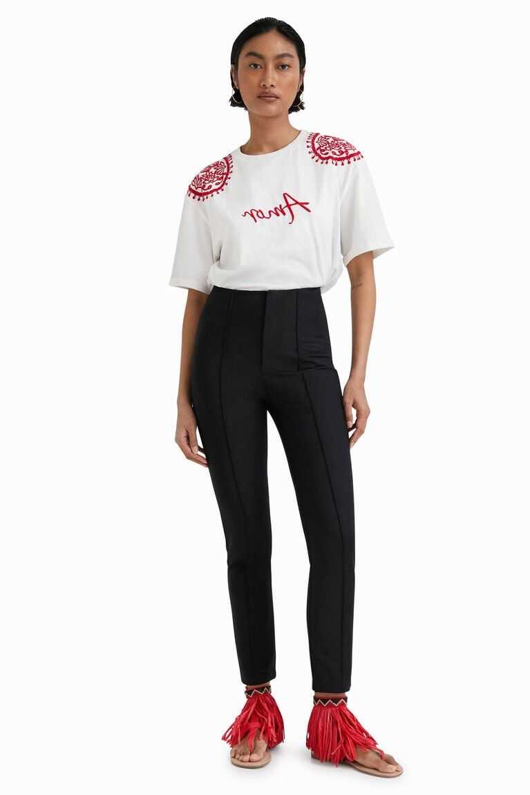 These high-waisted form-fitting trousers are designed by Stella Jean and perfect for creating total looks with other pieces from her collection.