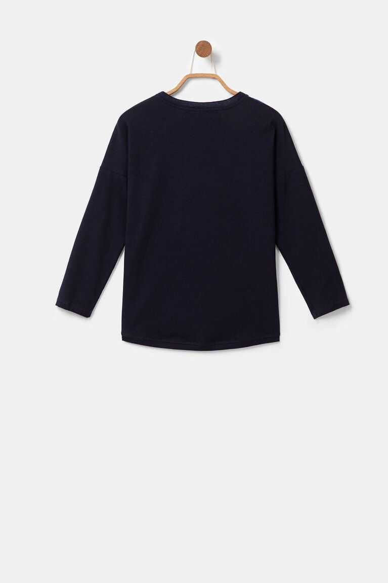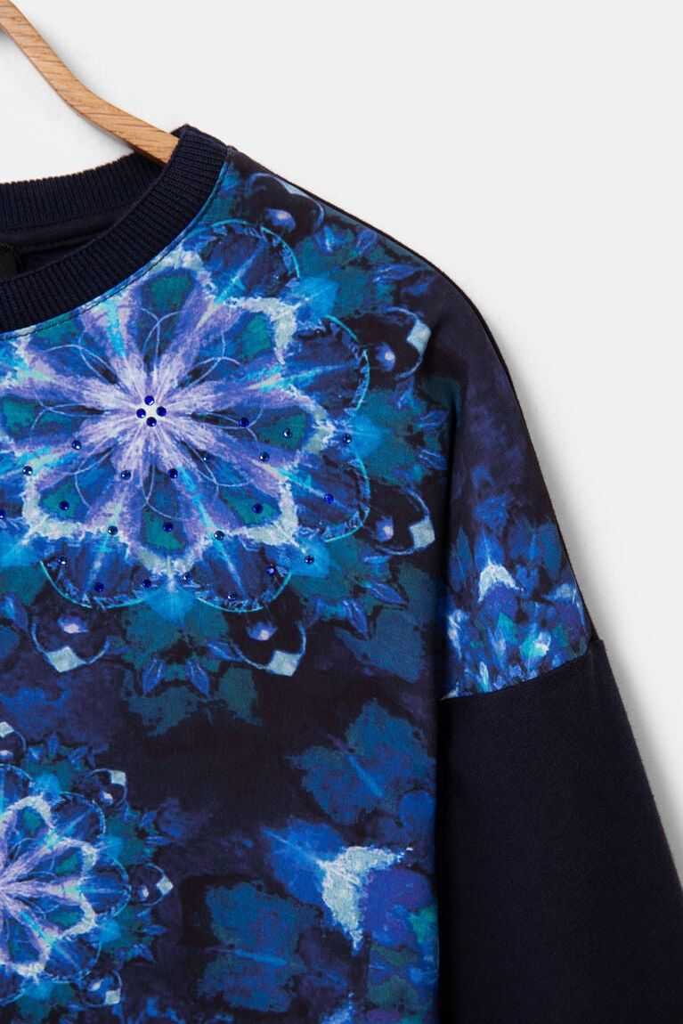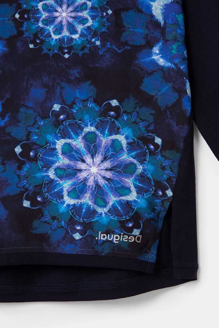 Tie-dye is much more than psychedelia; it's a subtle combination of colours. And little girls like this type of combination to be in fashion. This long sleeve jumper with frontal print of blue and green mandalas in tie-die effect will be one of their favourites.