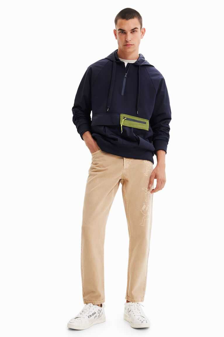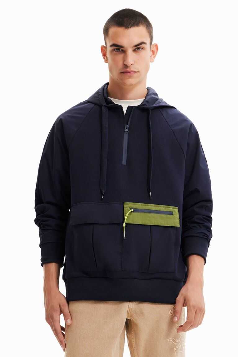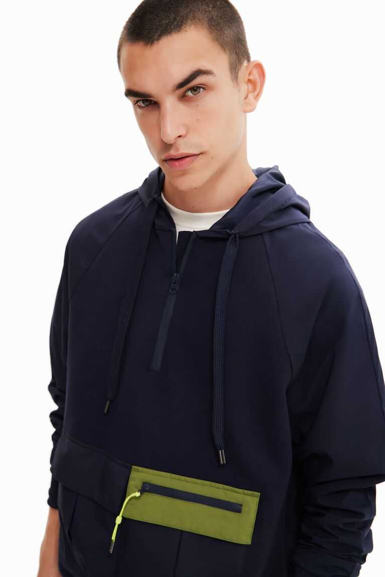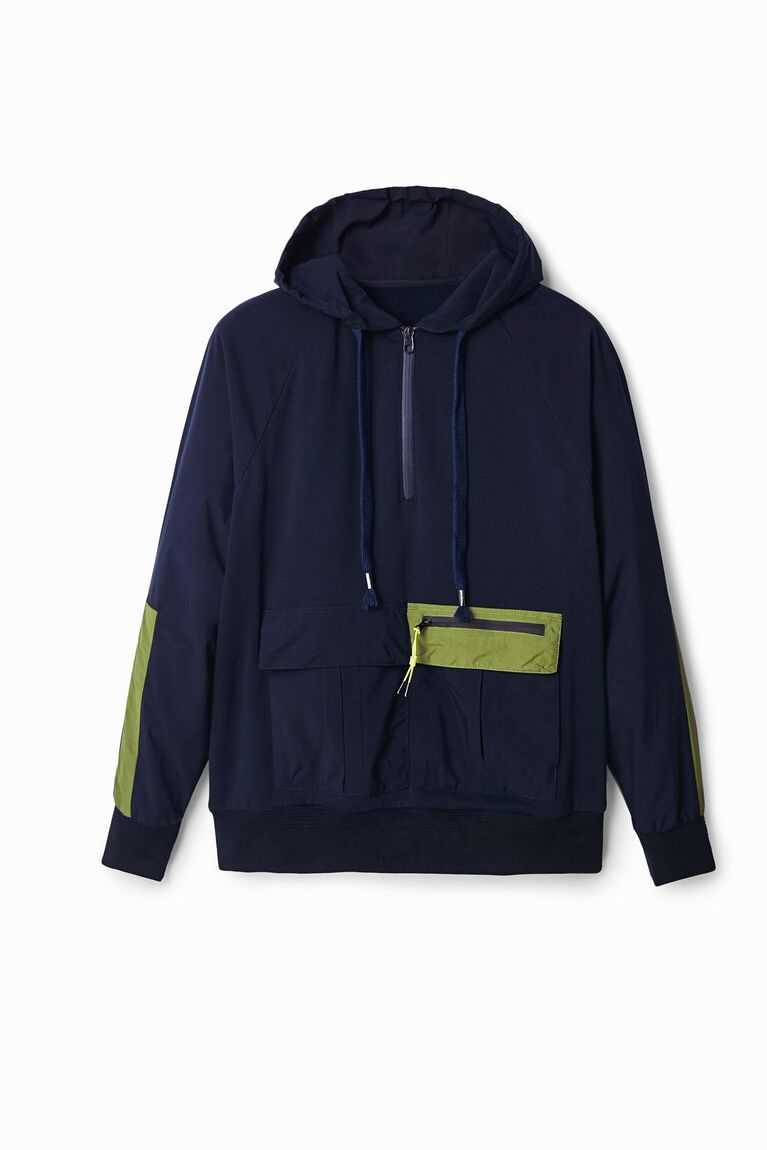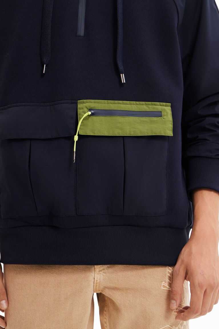 A sweatshirt made of cotton combining technical fabrics in different colours and featuring large front cargo pockets.