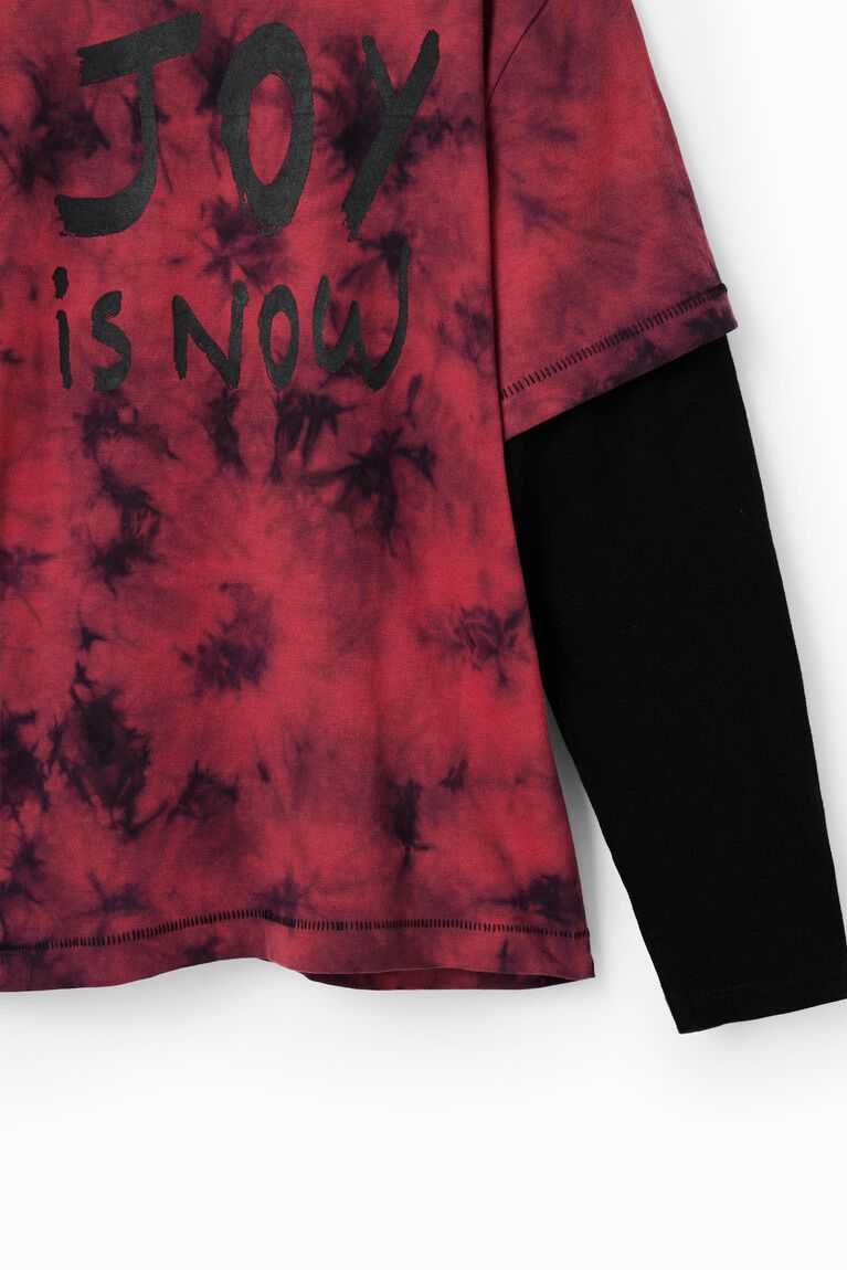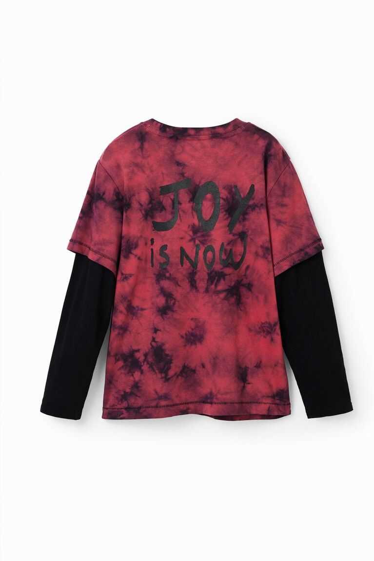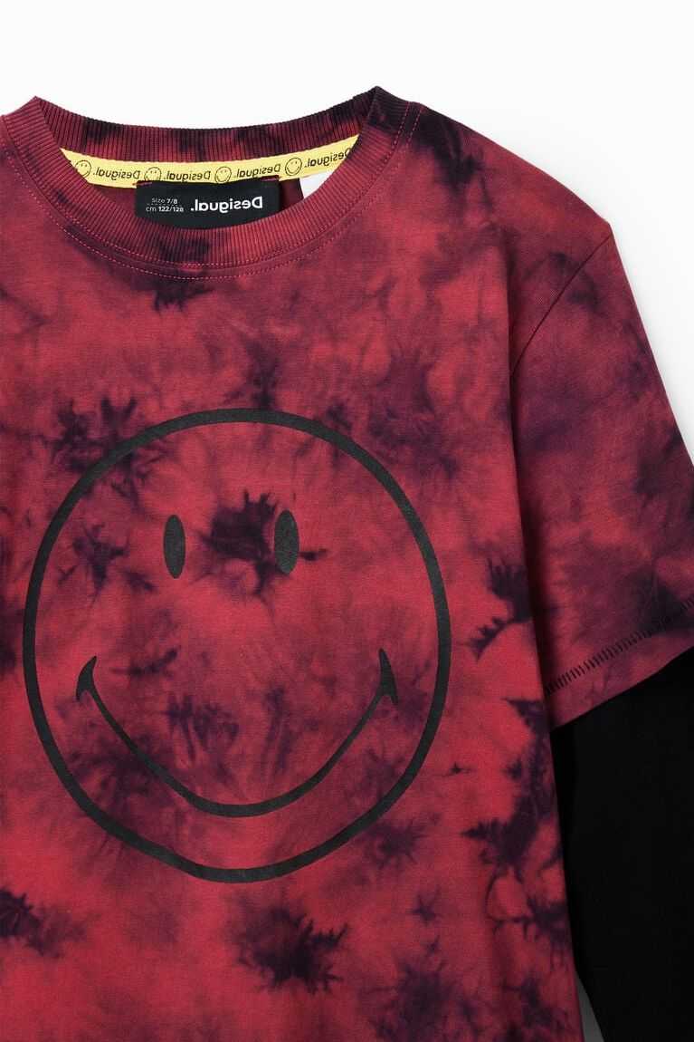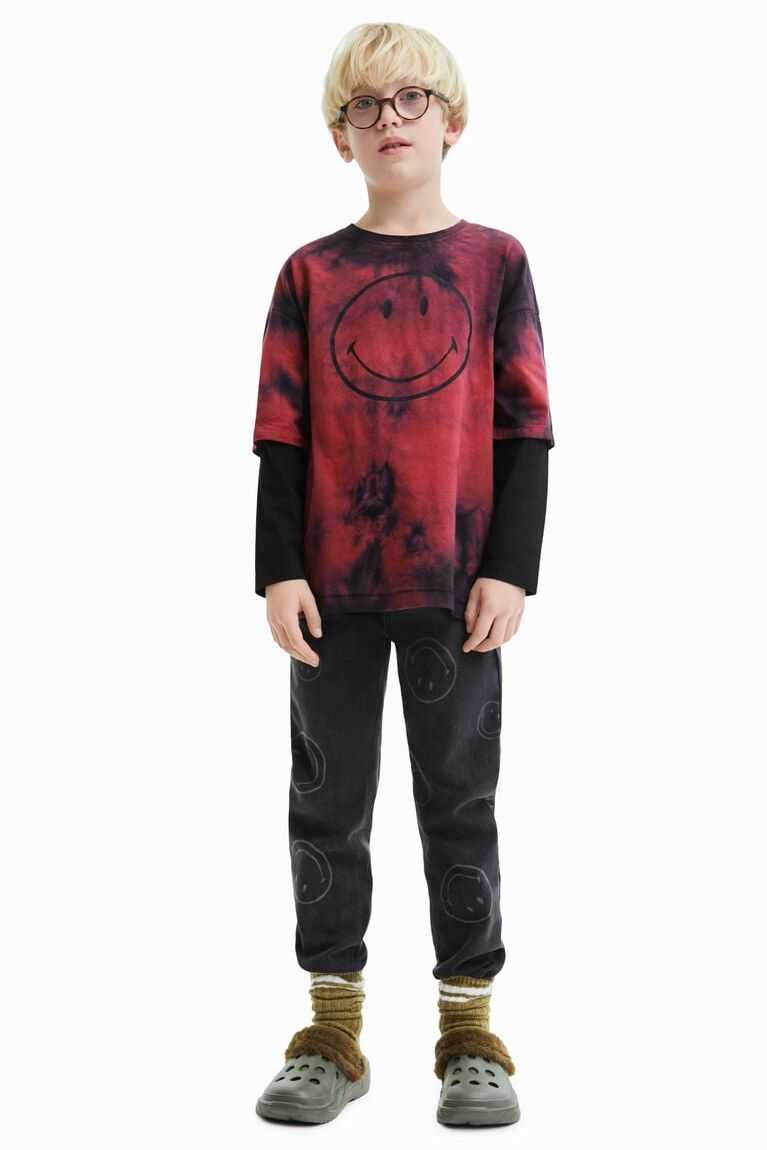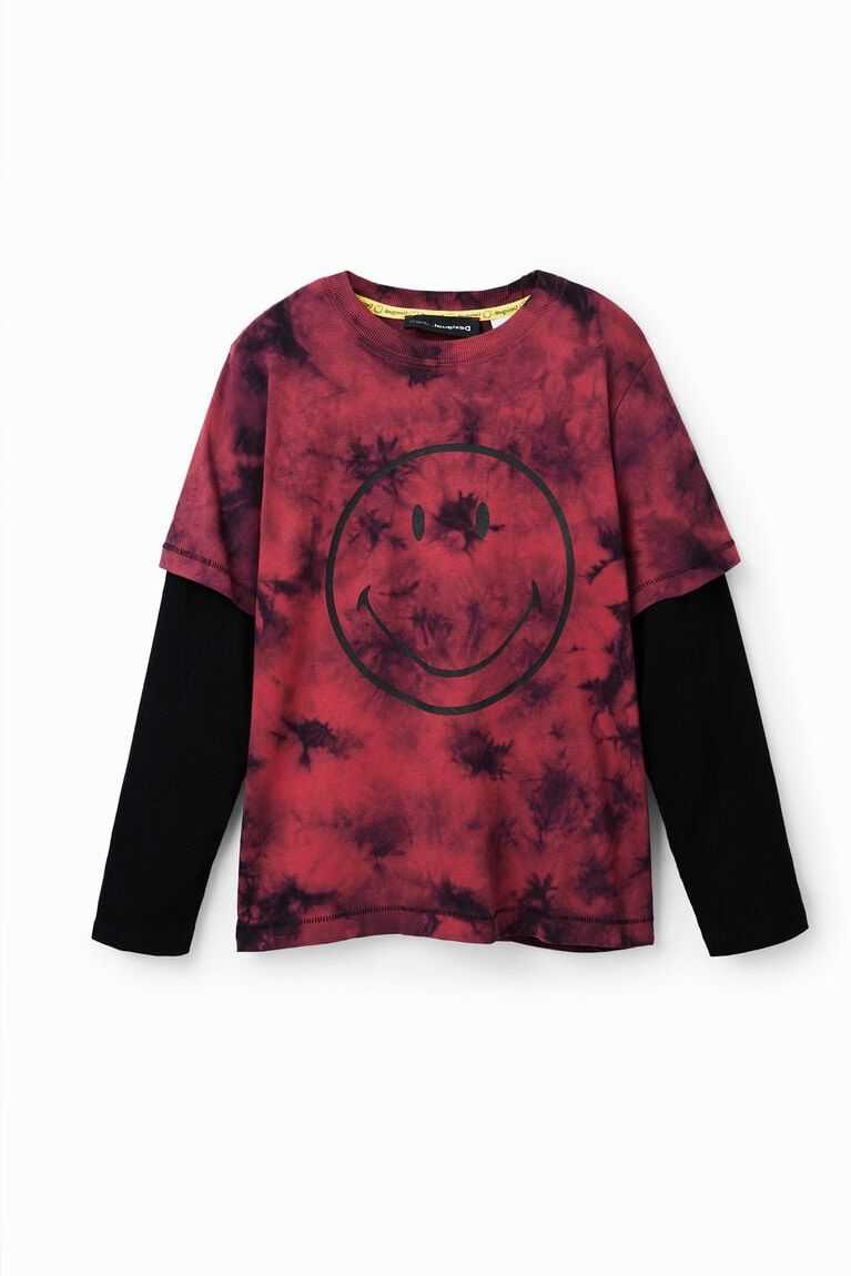 This tie-dye print T-shirt plays with layering and the effect of wearing two sleeves: long and short. Featuring a contrasting Smiley? on the front.