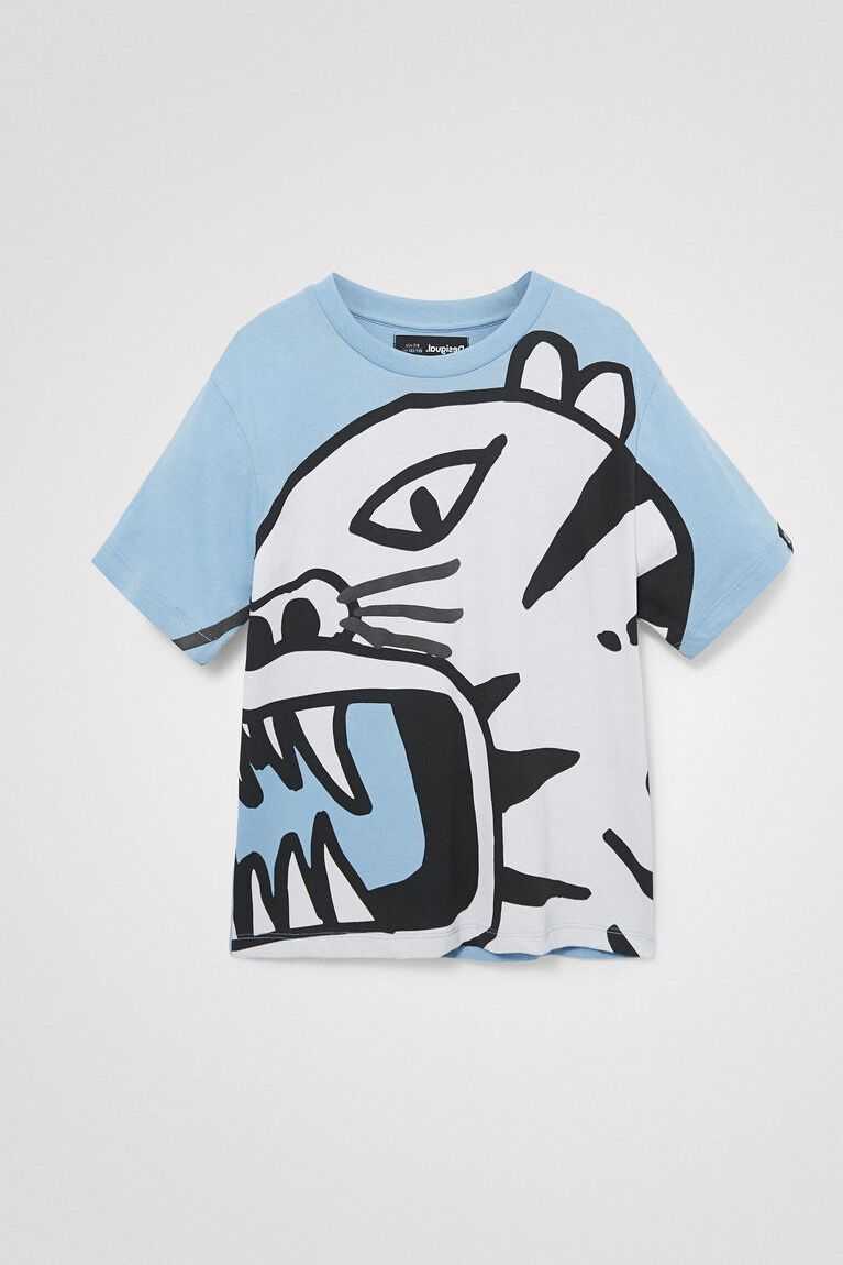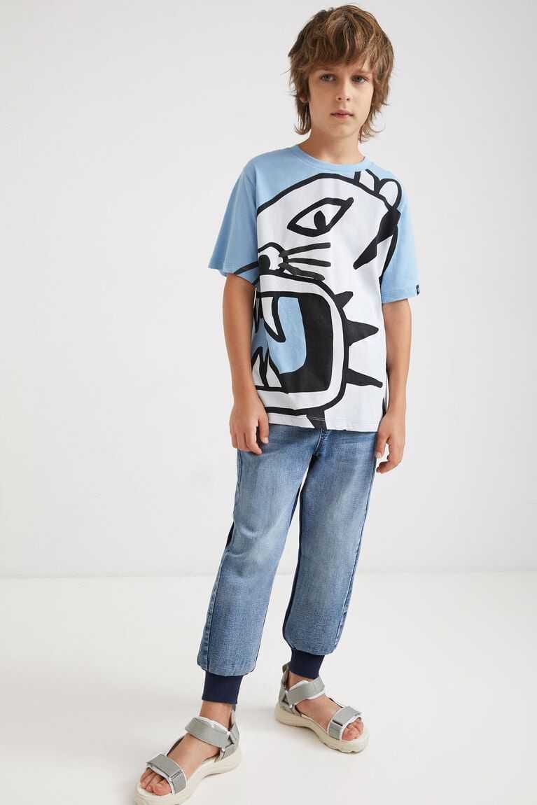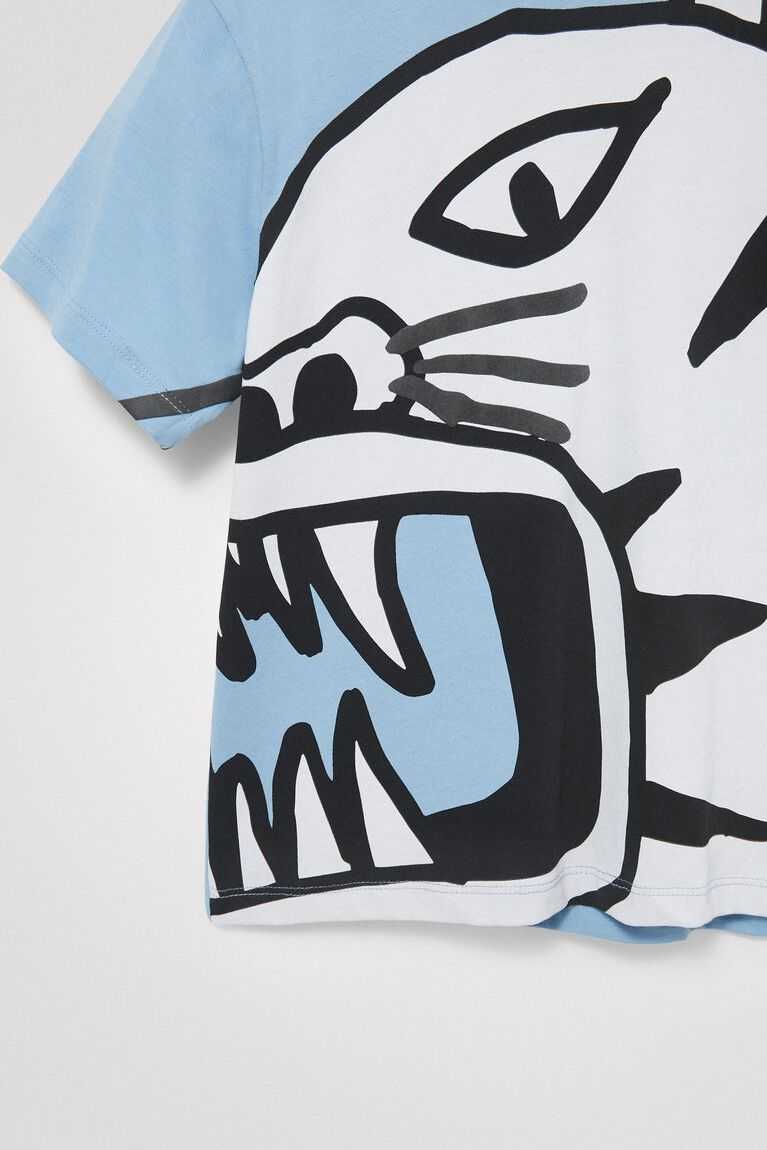 A tiger illustration brings a touch of fun to a petroleum blue short-sleeve T-shirt made from BCI cotton.