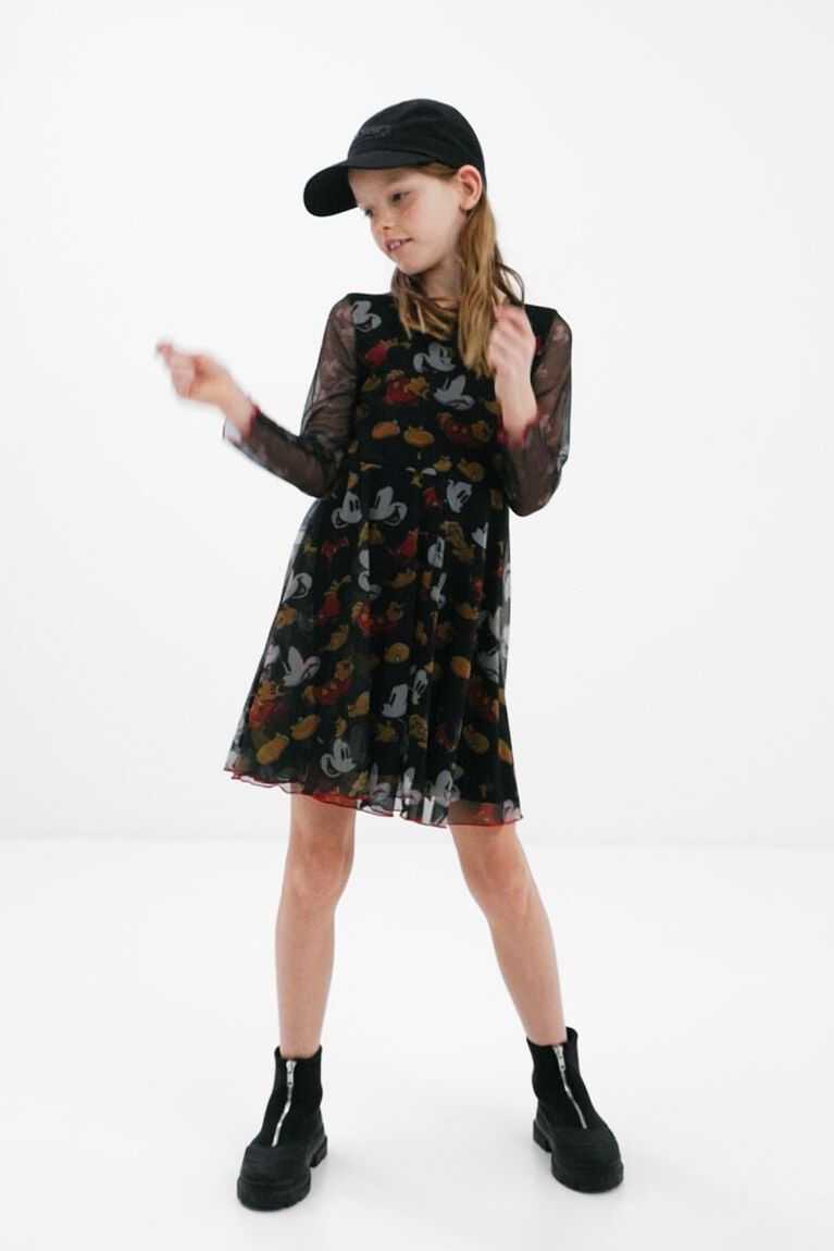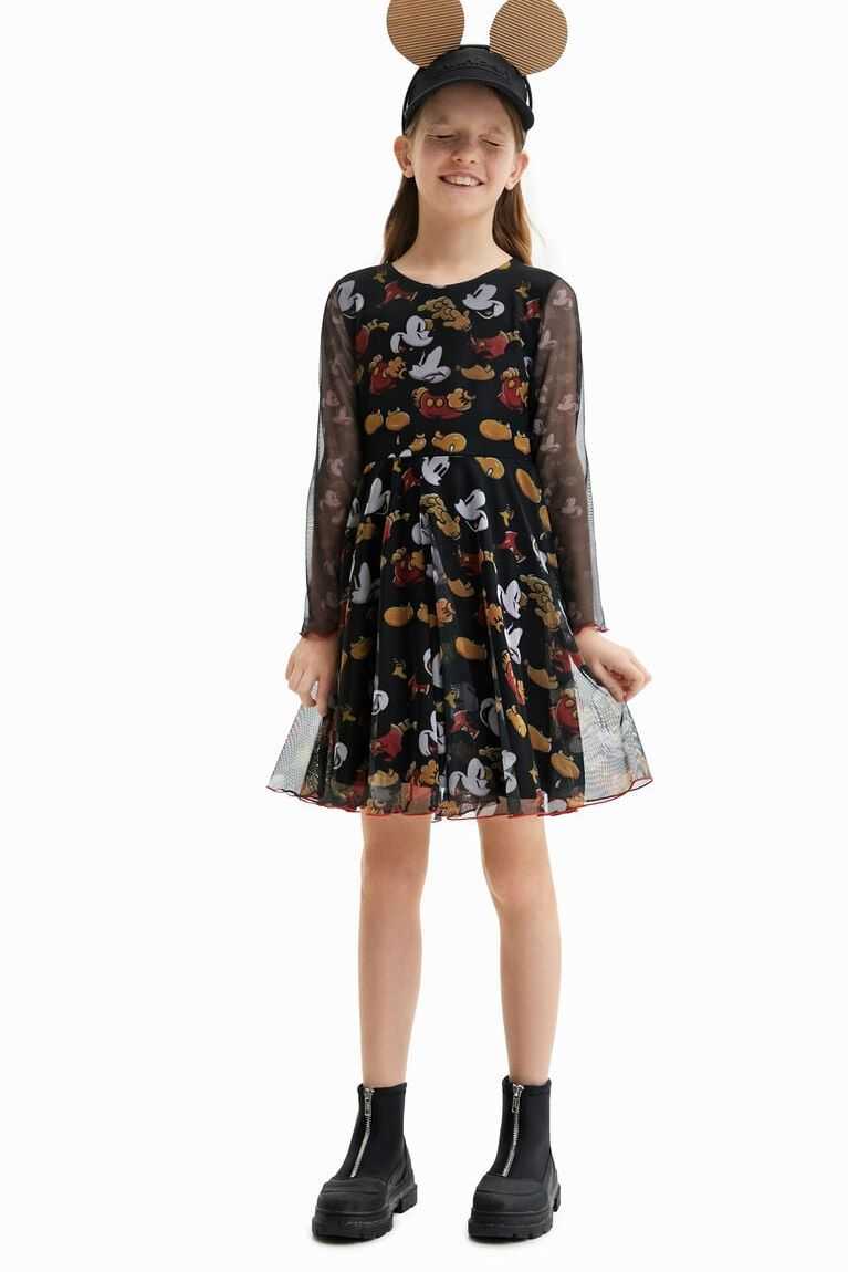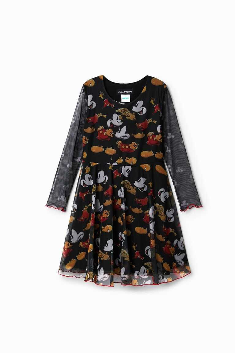 This long-sleeve tulle skater dress is emblazoned with an all-over print of Disney's Mickey Mouse. Made from eco-friendly fibres.