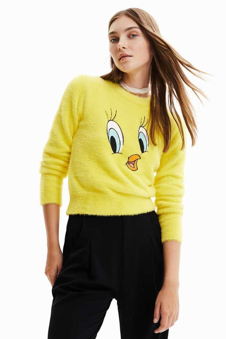 Tweety's face decorates this cosy plush jumper, which will add a fun touch to any look.