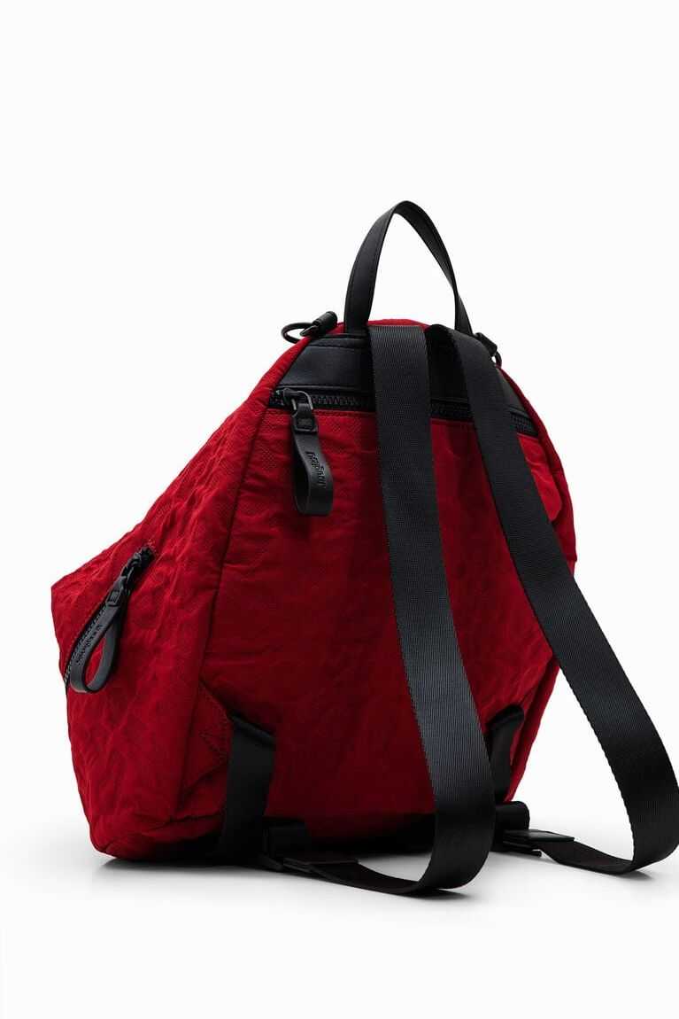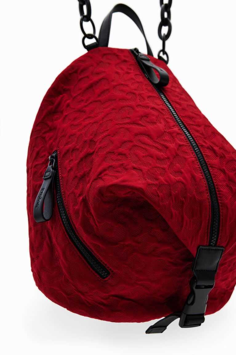 Medium-sized backpack that can be carried as a handbag thanks to its chain handle. Made from sustainable nylon with a tone-on-tone leopard texture.