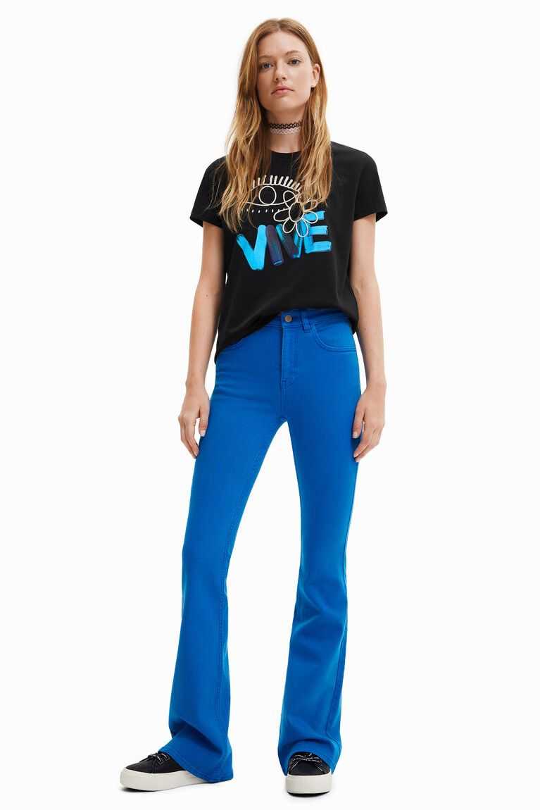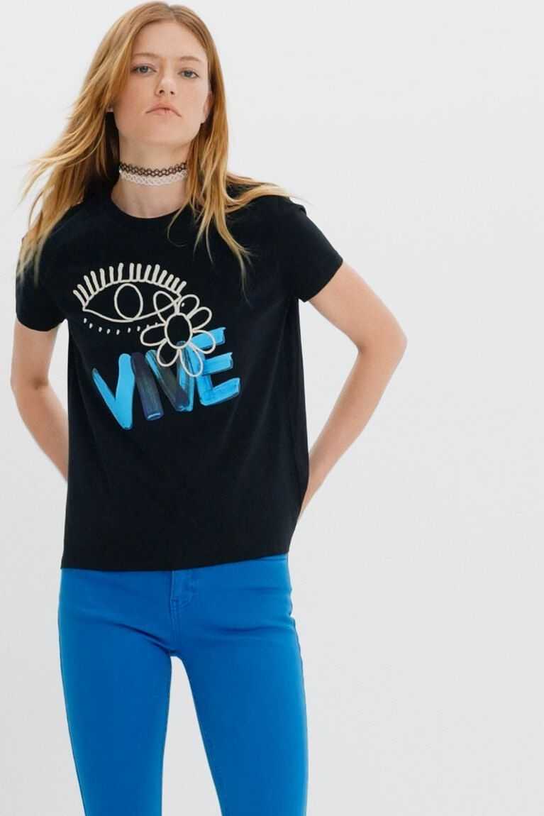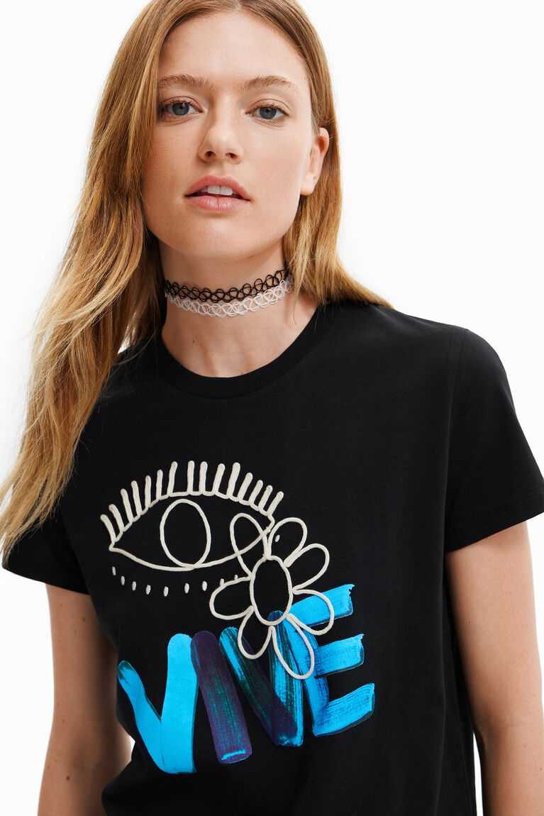 Featuring the message "Vive" on the front with a small graffiti-style collage of an eye and a flower, this basic cotton T-shirt is both comfortable and fresh.